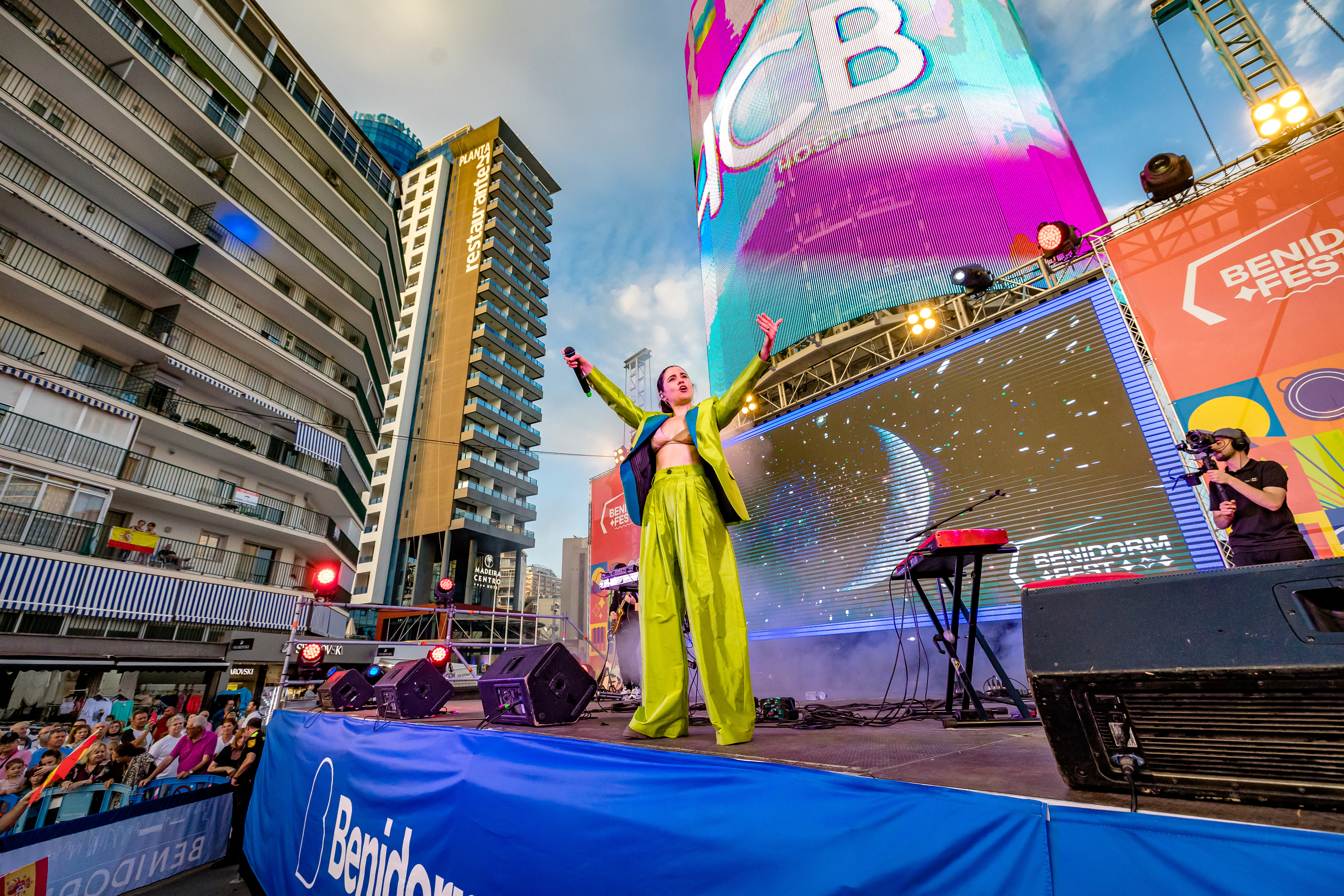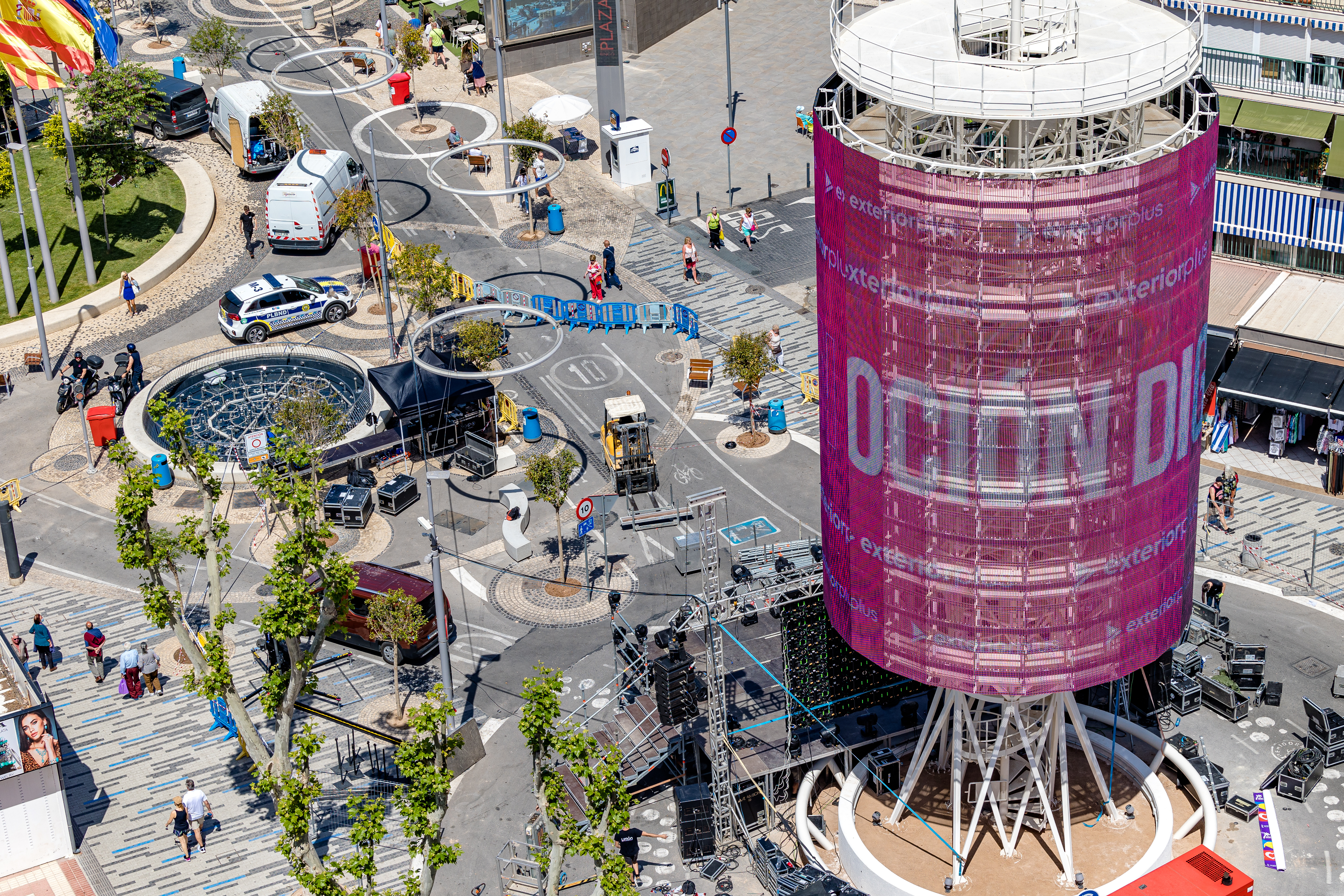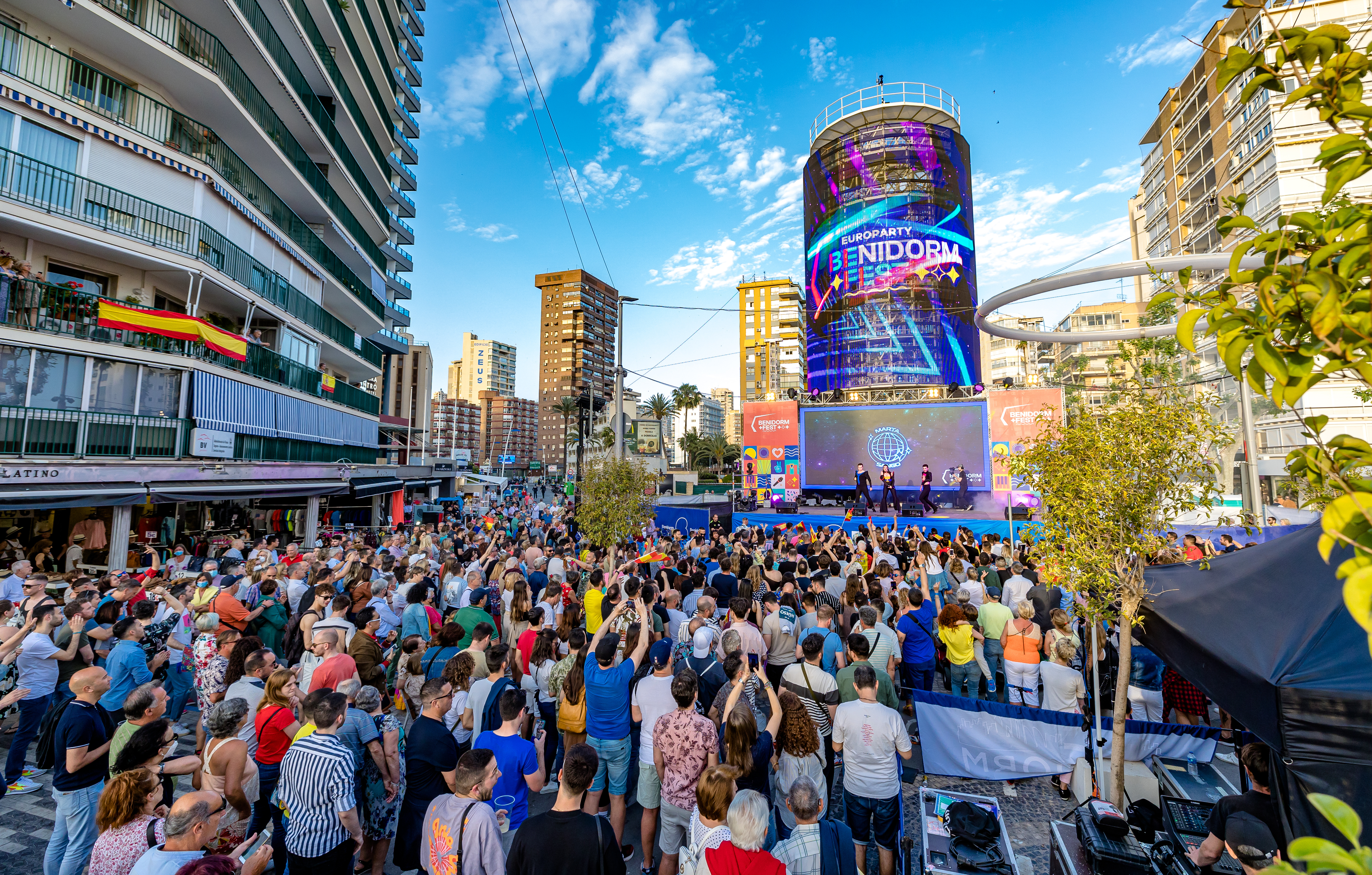 The inauguration of the Tecnohito in Benidorm became a party throughout Europe on the occasion of the Eurovision Song Contest, which was broadcast live internationally from the Plaza de la Hispanidad. In addition, a stage was set up at the foot of the Tecnohito, with performances by some of the semifinalists and finalists of the Benidorm Fest event . We were also able to see the first advertisers in the hands of Exterior Plus, such as Visit Benidorm, FCC and McDonald's, among others.