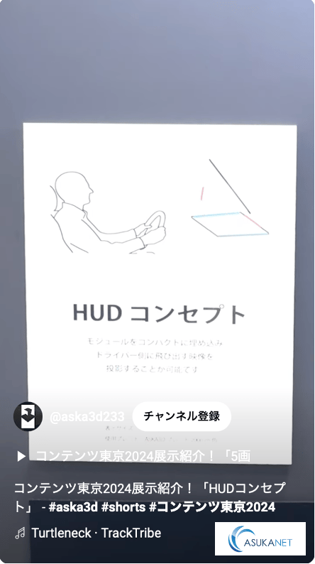 A demonstration of this technology was showcased at our booth during CONTENT Tokyo 2024. We have a video of the actual exhibit, so we encourage you to take a look. You can observe how the display appears to float in the air and is positioned near the viewer's line of sight, creating an impression of stronger floating in the mid-air.