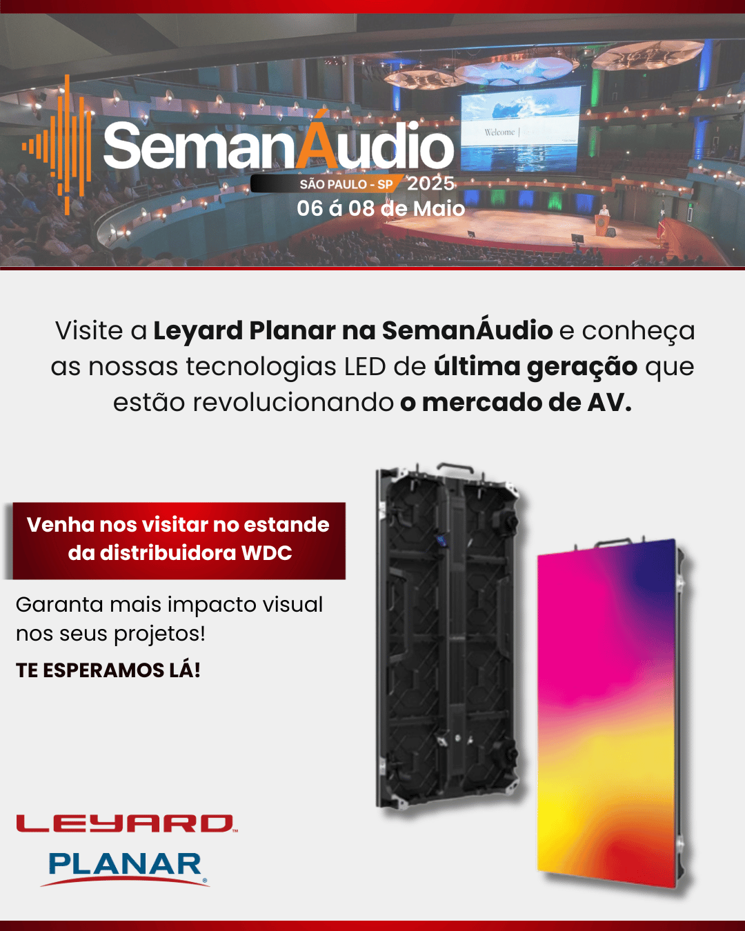 Venha nos visitar no estande da distribuidora @wdcnetworks Nosso time Leyard estará presente para receber você e apresentar todas as novidades.