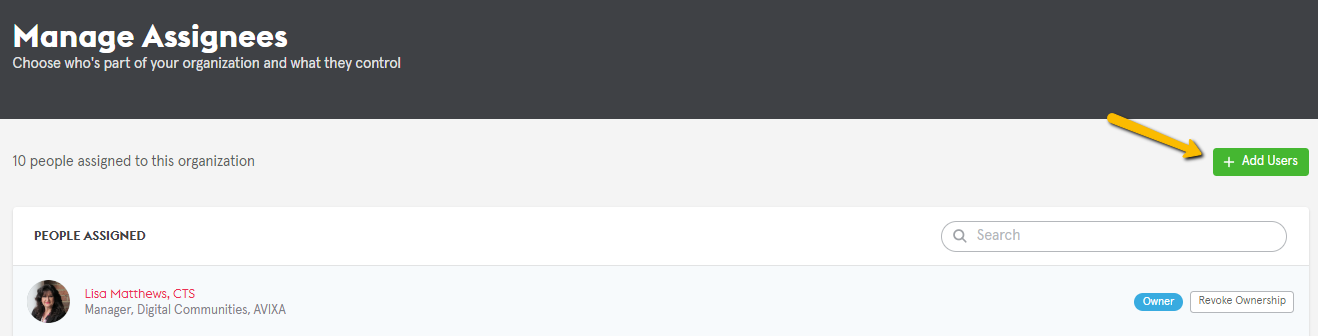 3. Scroll to the bottom of the page and click the “View Assignees” button. You’ll now see your name and any others who may be assigned to your organization.