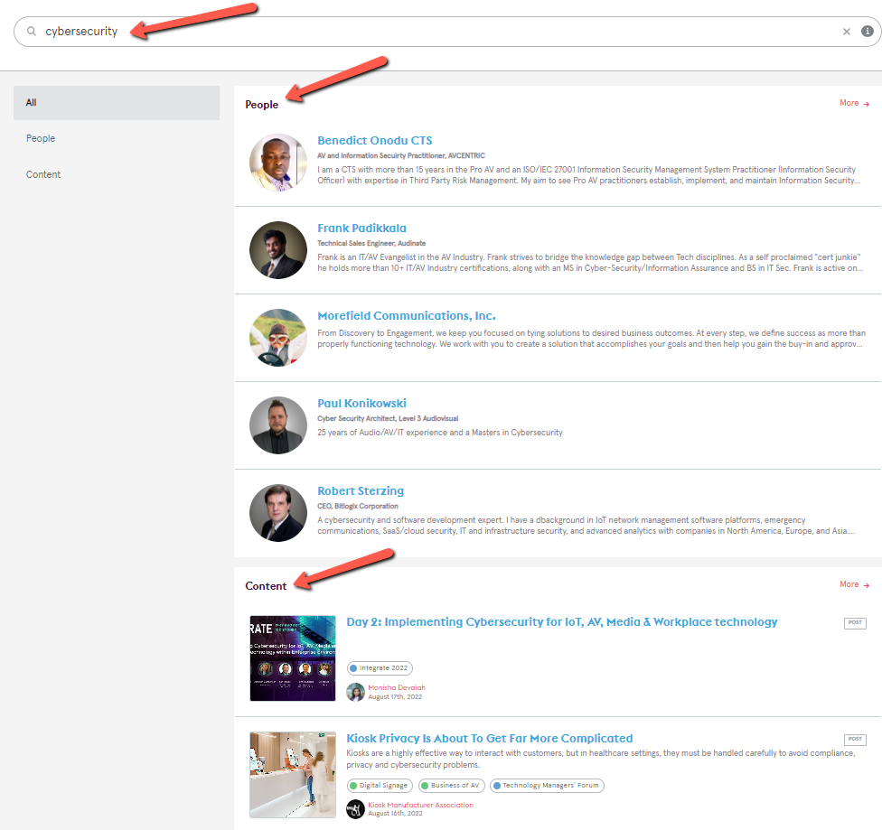- Searchable: Hashtags and badging help users filter content with the added bonus of being able to simply enter keywords into the global search field to find people and content.