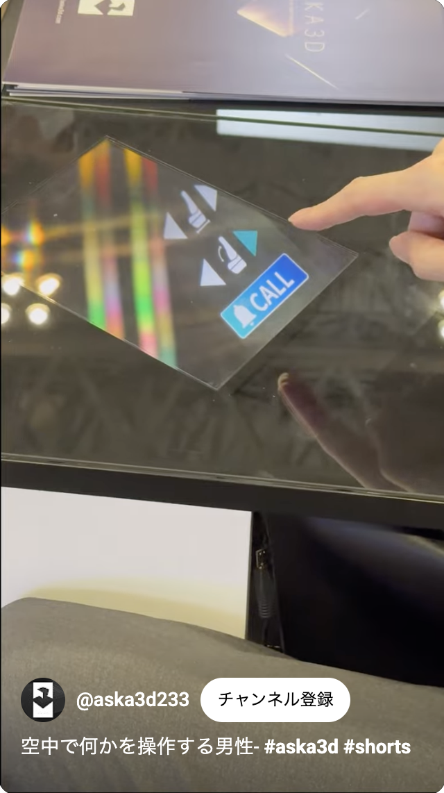 Imagine this. Sitting in a lounge seating on a long-haul airplane. In other words, think of it as sitting in a seat like first class. Like in this video, when you don't need it, it is an armrest of a chair or a table, but when you want some information or want to fold down or raise up your seat, a display appears in the air and you can order your meal or adjust the reclining of your seat.