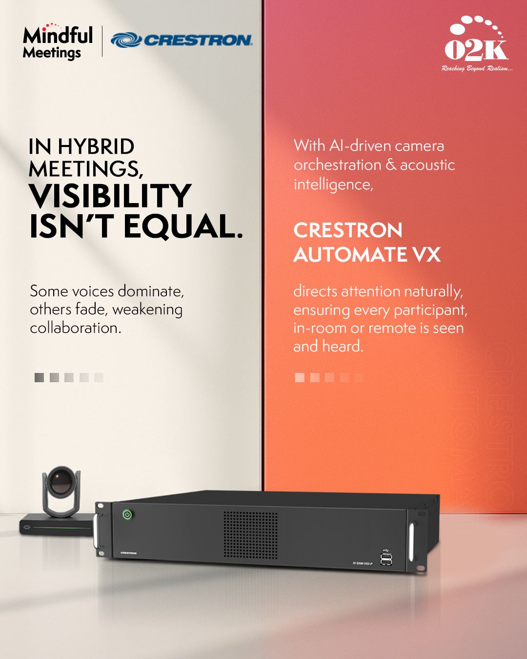 #O2K #CrestronAutomateVX #MindfulMeetings #SmarterWorkspaces #HybridCollaboration #AVIntegration