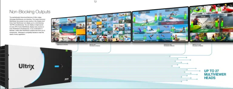 One of the great advantages of choosing Ultrix as your connectivity solution is that it opens the door to the full potential of a Hyperconverged solution. You can easily and quickly deploy a simple router, and later build upon it Ultriscape multiviewers, Ultriix-MXR audio mixers, powerful signal processing, and even award-winning Ultrix Carbonite and Ultrix Acuity production switchers. Most upgrades are software-enabled so they can easily be turned on at any time without complex and time-consuming racking and cabling. Pay as you go, only adding capability as you need it.