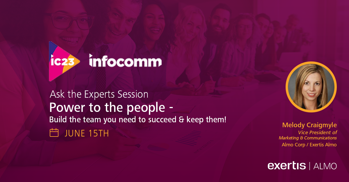 Melody Craigmyle, VP of Marketing and Communications at Exertis Almo will be one of the panelist for AVIXA's Ask the Experts Session: Power to the people - Having built the team you need to succeed, how do you keep your talent?!