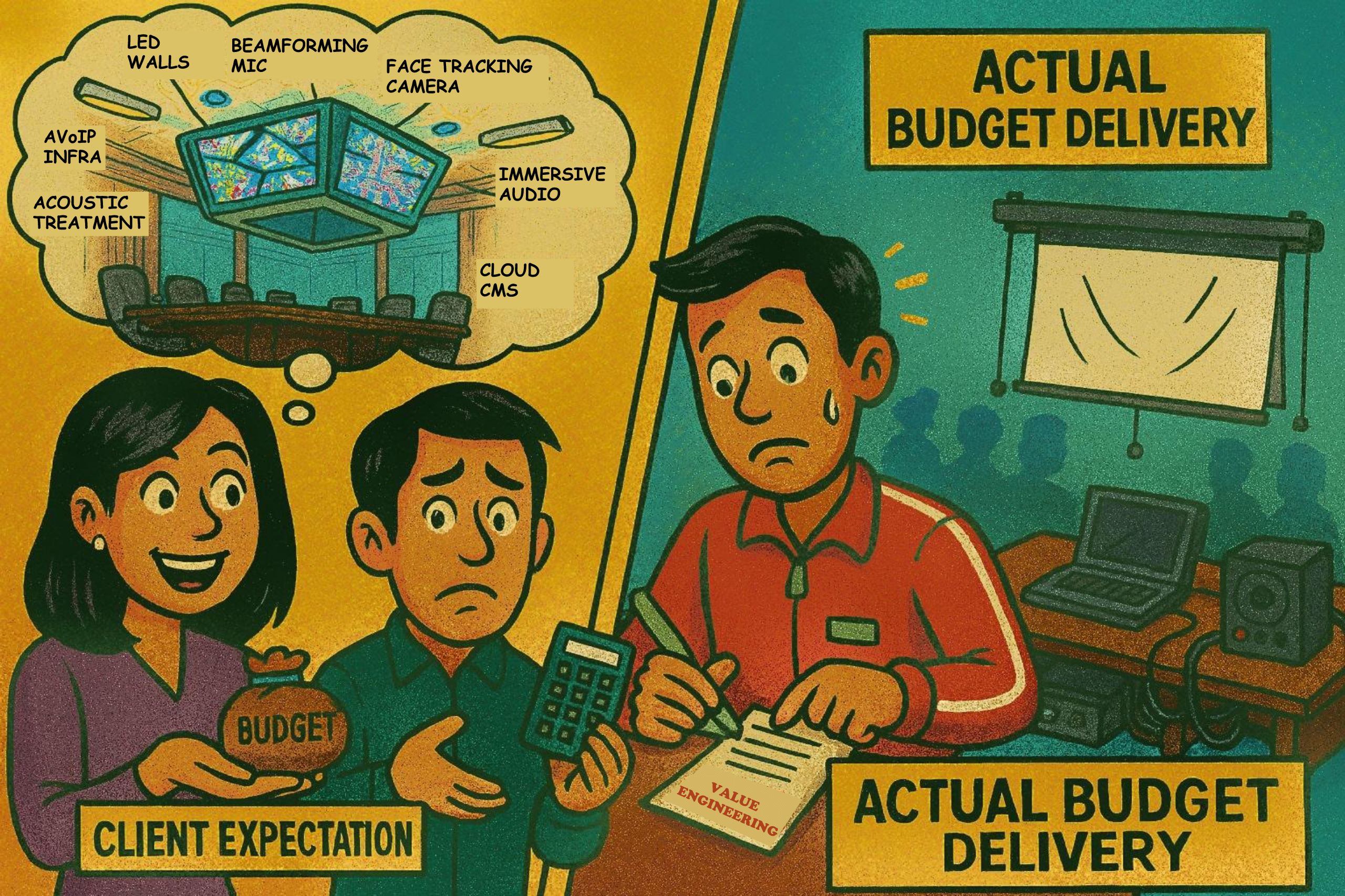 The client comes to the consultant with a long wish list—LED walls, immersive everything, AI-powered tech galore—but the budget tells a different story. Suddenly, it’s the consultant’s job to omit, tweak and rework the entire design through “value engineering.” While smart solutions can help, there’s only so much magic possible when expectations don’t match the resources.