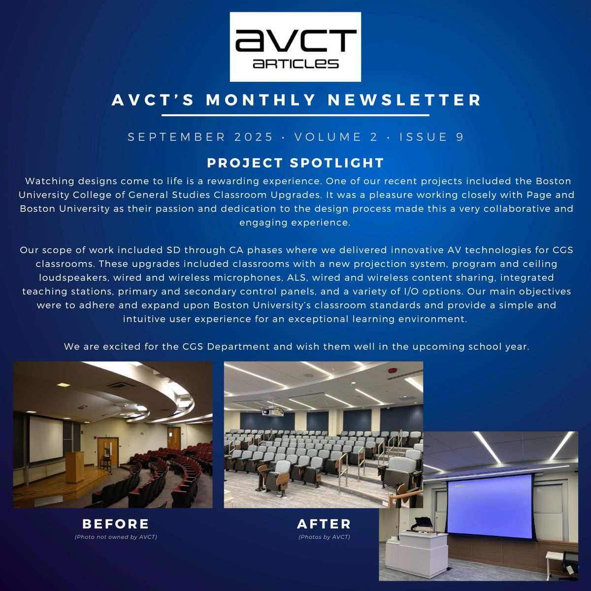 Boston University Boston University College of General Studies The American Institute of Architects (AIA) Boston Society for Architecture InfoComm AVIXA Integrated Systems Europe (ISE) Audio Engineering Society NextLVL Learning Inc. Audiovisual Consulting Team #avconsulting #designstransforminghighered #av Page