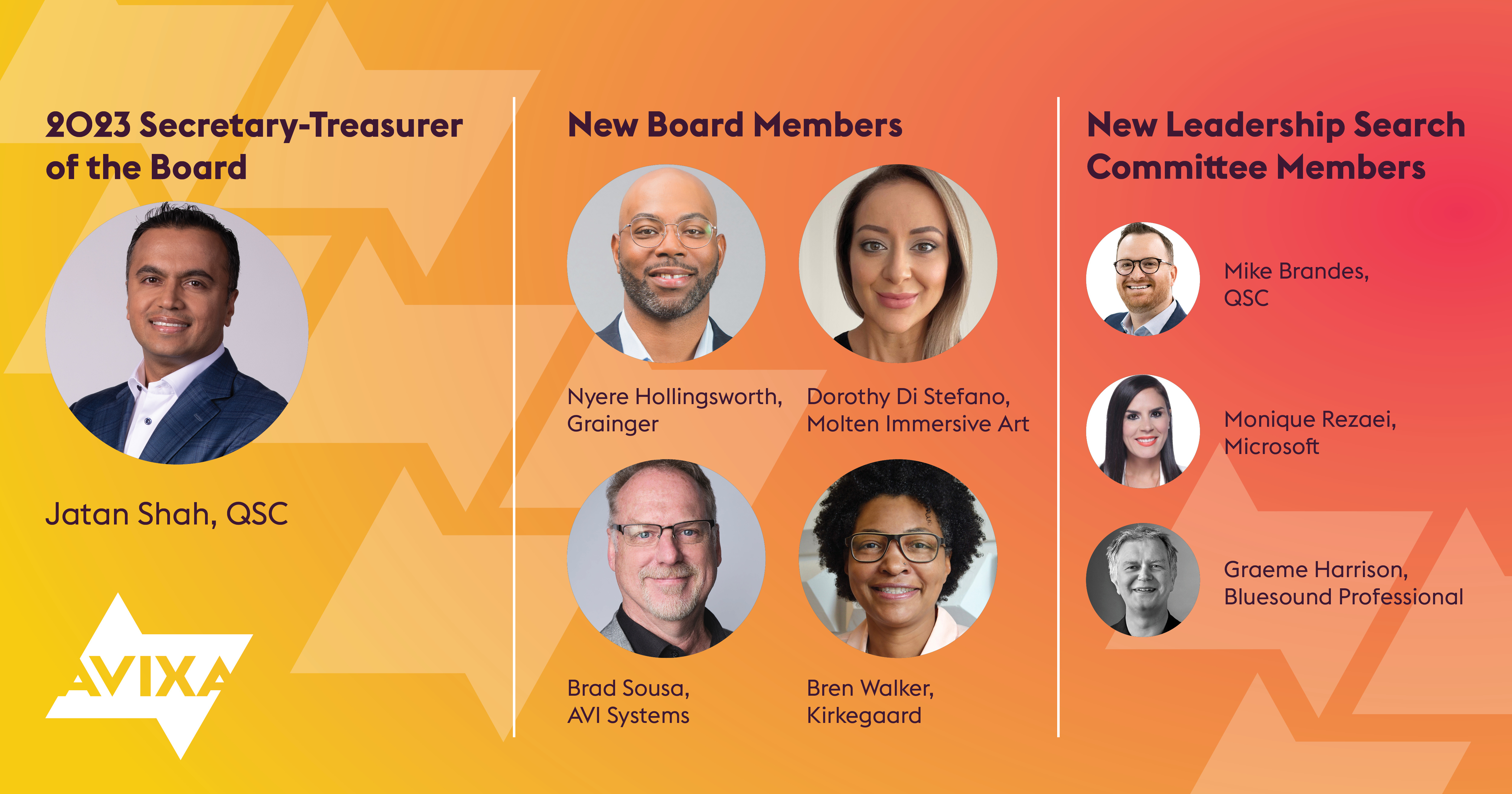 FAIRFAX, VA – Noviembre 14, 2022 – AVIXA (the Audiovisual and Integrated Experience Association) informa sobre los resultados de la elección de los nuevos miembros de su Junta Directiva de 2023 y del Comité de Selección de Liderazgo.