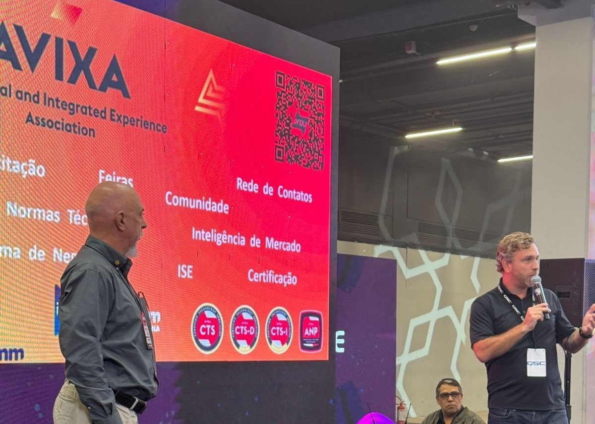 A AVIXA marcou presença no evento com os representantes Nelson Baumgratz, CTS-D, Gerente Regional para o Mercosul, e Rodrigo Casassus, CTS, Diretor Senior para a América Latina e o Caribe, colaborando com a missão de promover a capacitação e o uso estratégico das tecnologias AV nos espaços de culto.