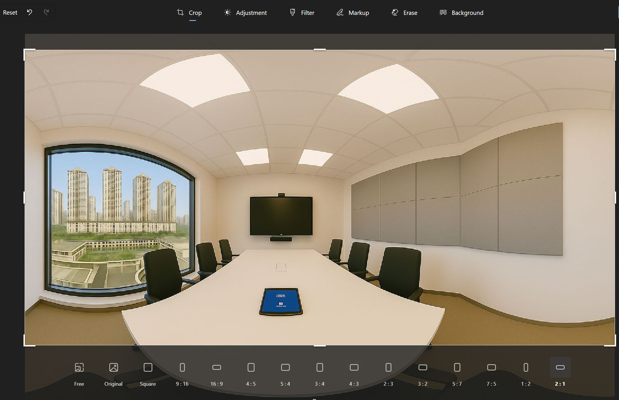Take it to the next level—visualize the room in virtual reality! Most online 360 photo viewers and VR headsets read equirectangular images with a 2:1 aspect ratio.