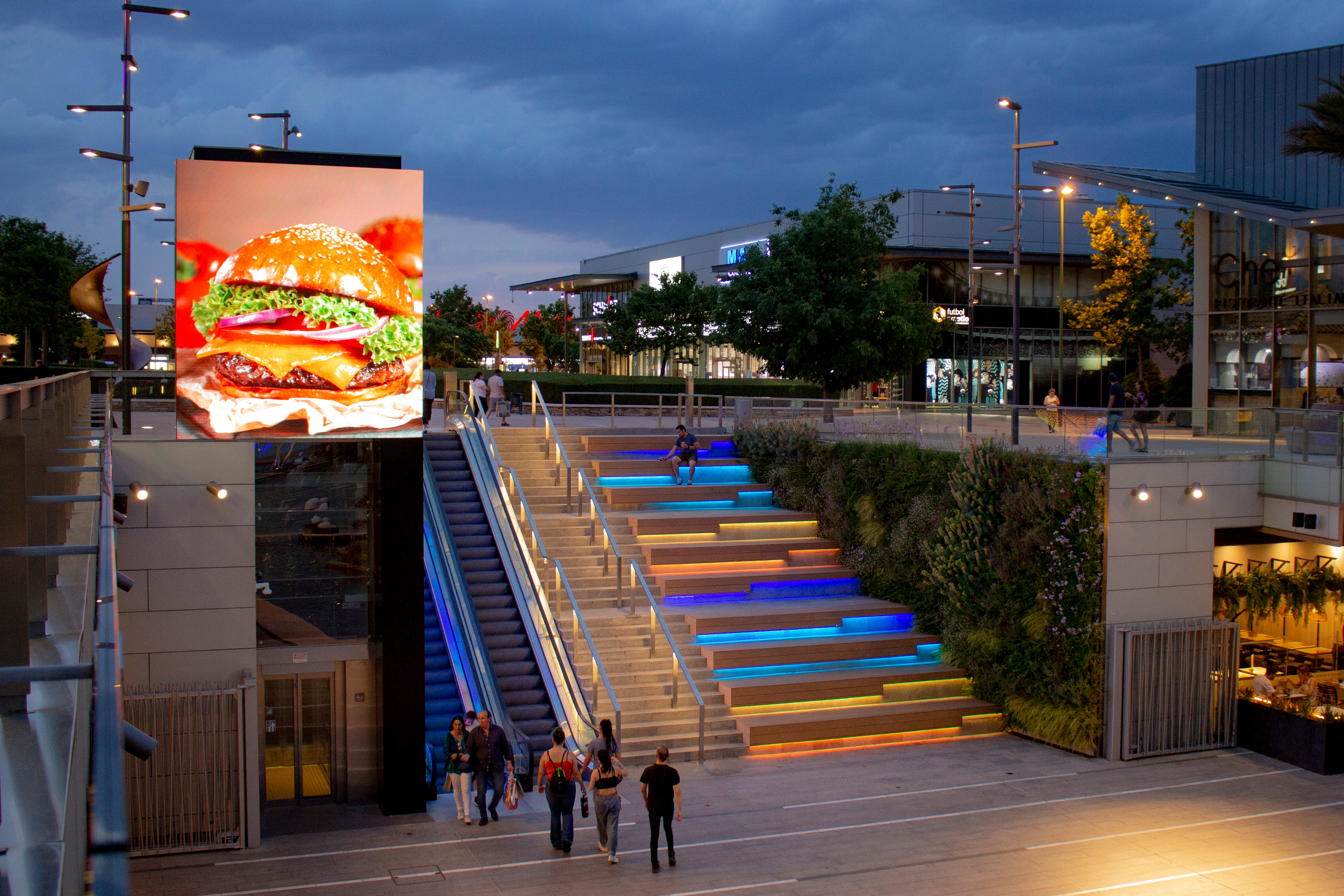 This comprehensive project, construction management and Project management, has been led by IDOM engineering. As part of this reform, after the renovation phase of the terraces, a new dynamic digital façade concept has been created, located at a strategic point that connects the Boulevard area with the Gallery y Ocio shopping area.