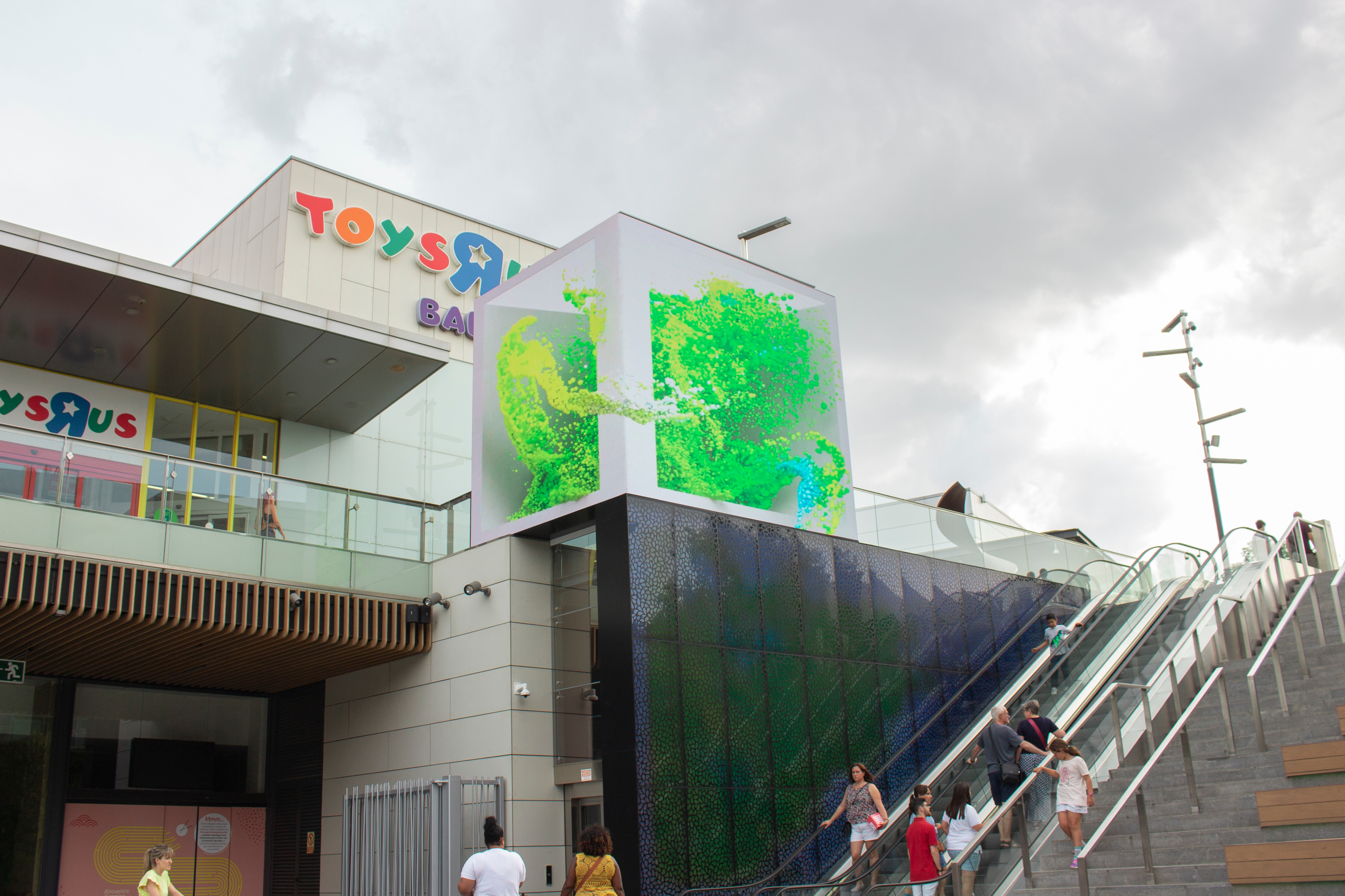 It is an innovative technological concept that merges technology and architecture. A wide range of video hardware together with dynamic digital lighting, as well as combining different synchronized content managers, with ad hoc visual content: dynamic templates for real-time content playback, 2D and 3D content creation. Everything to create a unique and immersive experience in one of the main entrances of the mall.