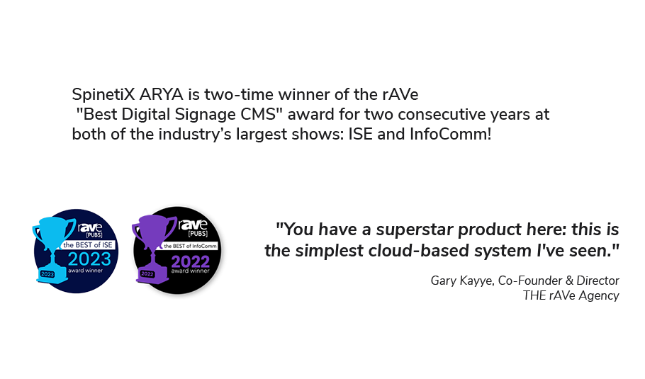 Join us on our booth #833 and discover how the ease of use of SpinetiX ARYA SaaS combined with the powerful Elementi authoring software expands your creative options.