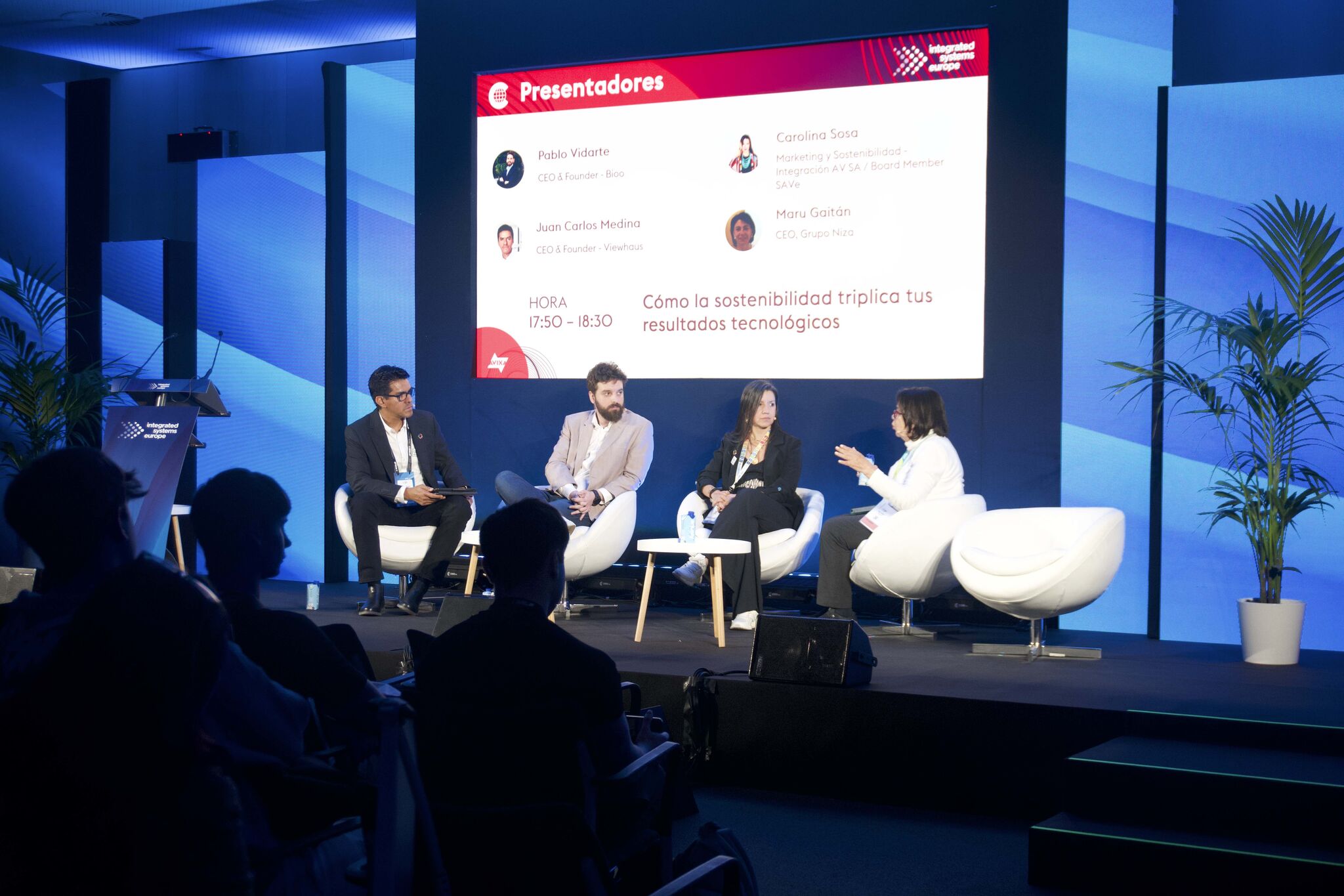 Esta charla contó con Pablo Vidarte, CEO & Founder - Bioo; Patricia Ayma Maldonado, President and CTO - Venvirotech; Juan Carlos Medina, CEO & Founder - Viewhaus; Carolina Sosa, Marketing y Sostenibilidad / Board Member - Integración AV SA / SAVe; y Maru Gaitán, CEO - Grupo Niza.