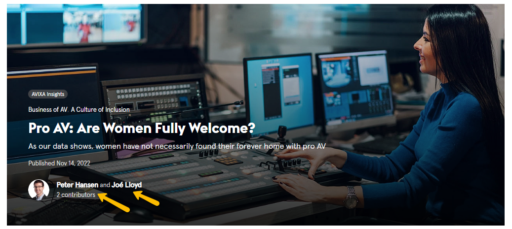 Here’s an example of a feature authored by Peter Hansen and Joé Lloyd: Pro AV: Are Women Fully Welcome? Click through to the post and note how you can click on both the authors’ names.