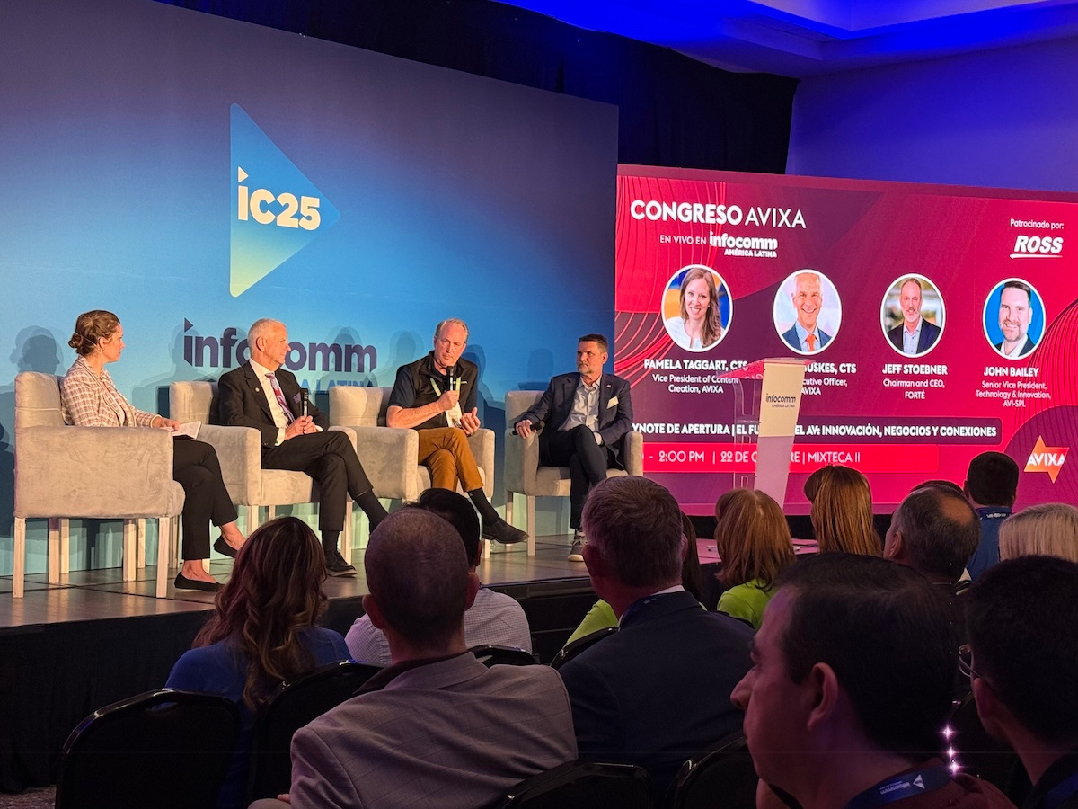 El escenario principal reunió a representantes de AVIXA, quienes recordaron que esta feria no se trata únicamente de mostrar equipos, sino de celebrar la conexión humana detrás de cada proyecto audiovisual. El entusiasmo del público llenó el recinto: los aplausos, las cámaras levantadas y la emoción compartida marcaron el inicio de una edición donde el sentido de comunidad es protagonista.