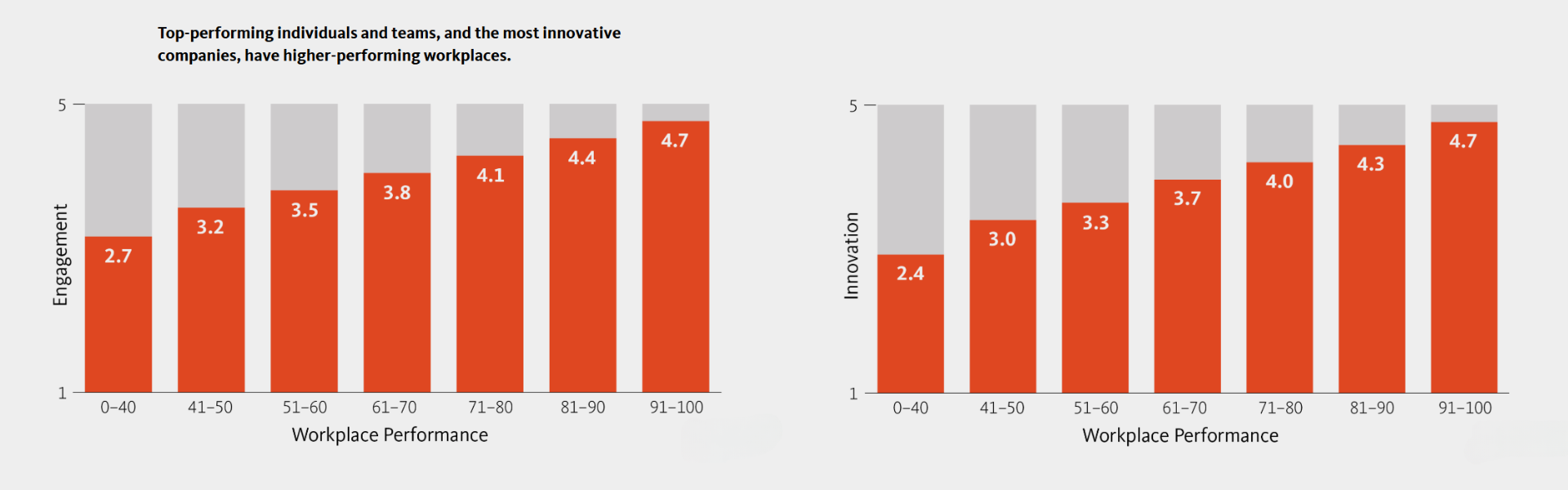 Según Gensler, el rendimiento en el lugar de trabajo se basa en dos aspectos clave: