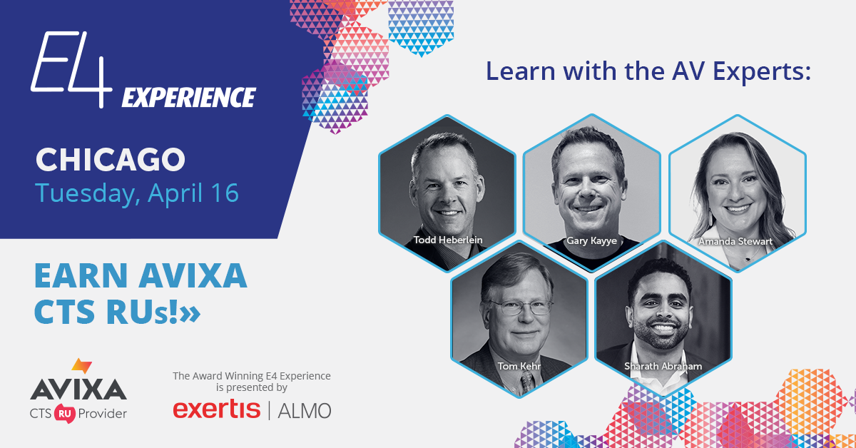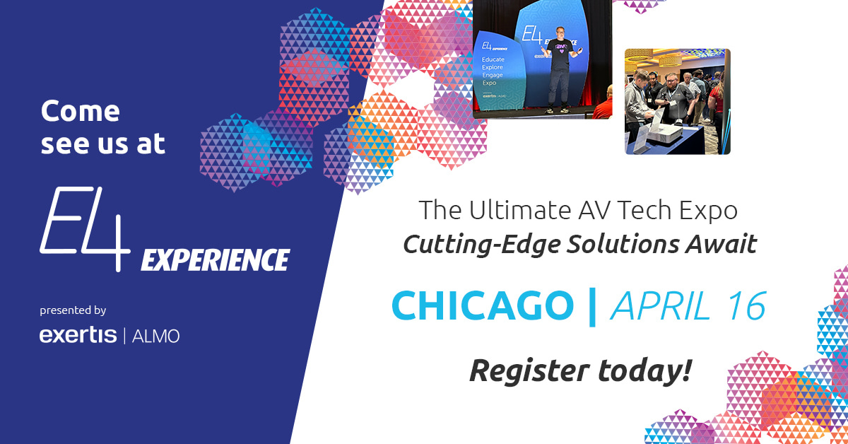 Honored with a 2023, SCN Stellar Service Award and 2023 Commercial Integrator BEST and Quest For Quality awards, the E4 Experience is a free, one-day regional AV education, training and product showcase for Exertis Almo resellers, integrators, consultants, and their end users.
