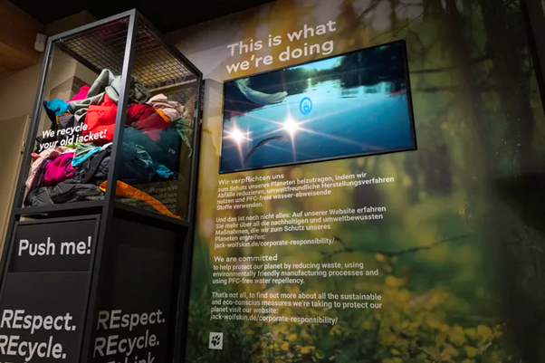 En Frankfurt (Alemania) se ha presentado un proyecto de transformación digital en la recién renovada tienda insignia de la marca minorista Jack Wolfskin. En colaboración con la empresa PPDS (Philips Professional Display Solutions) y pilot Screentime, especialista en soluciones creativas de pantallas digitales, este proyecto es un paso hacia un futuro más ecológico.