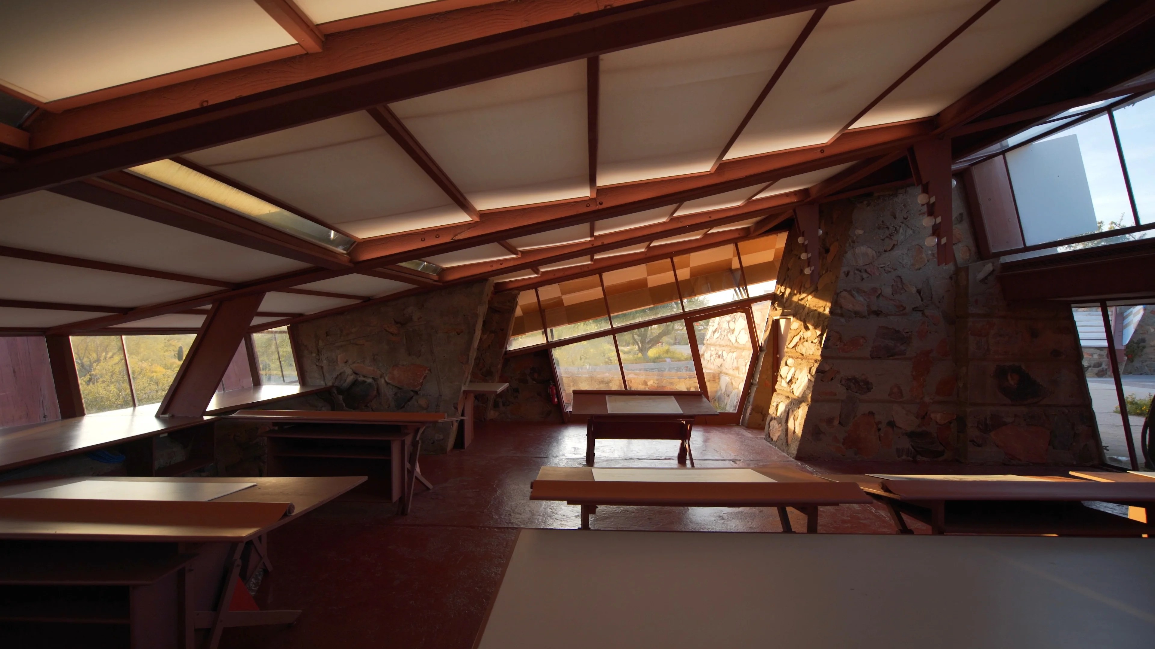 The initial creation of Taliesin West began with advice from Wright's doctor in 1935, suggesting that the architect "migrate" to Arizona every winter to avoid the harsh conditions of a Midwest winter. Working with his students, as well as utilizing resources native to the Arizona desert, Wright envisioned Taliesin West as a unique addition to the landscape that also naturally integrated with it. In 2019, the home was designated as a UNESCO World Heritage Site, and now offers tours to the public.