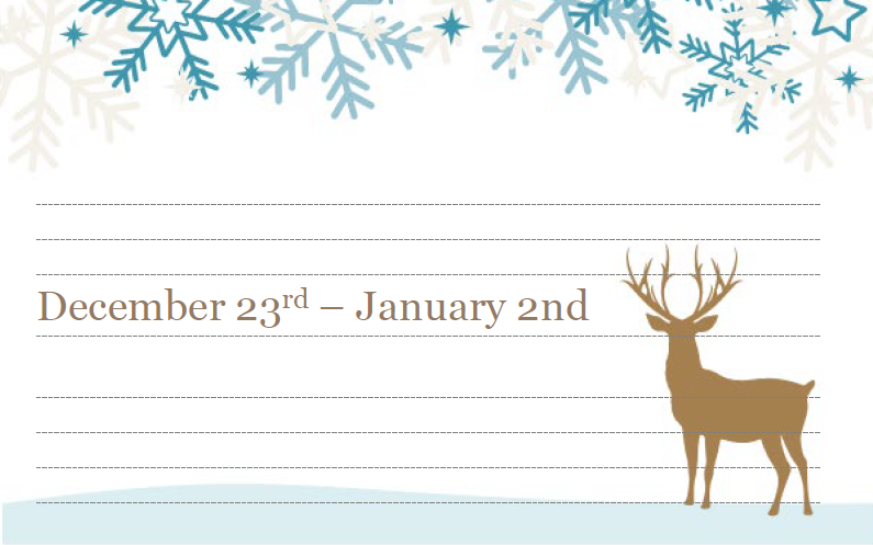 Any inquiries sent to the Certification Office during this time will be addressed and responded to as soon as we return on Tuesday, January 3rd. Please note that as we tend to receive many inquiries during this time, it might take us a bit longer to respond than usual. For those of you whose certifications expire at the end of December, don't forget to submit your renewal once you meet the requirements.