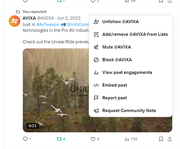 On the post you wish to embed into your content, click on the ellipses in the top right-hand corner and select Embed, which will enable you to copy the code to your clipboard, whilst displaying a preview of what the embedded post will look like.