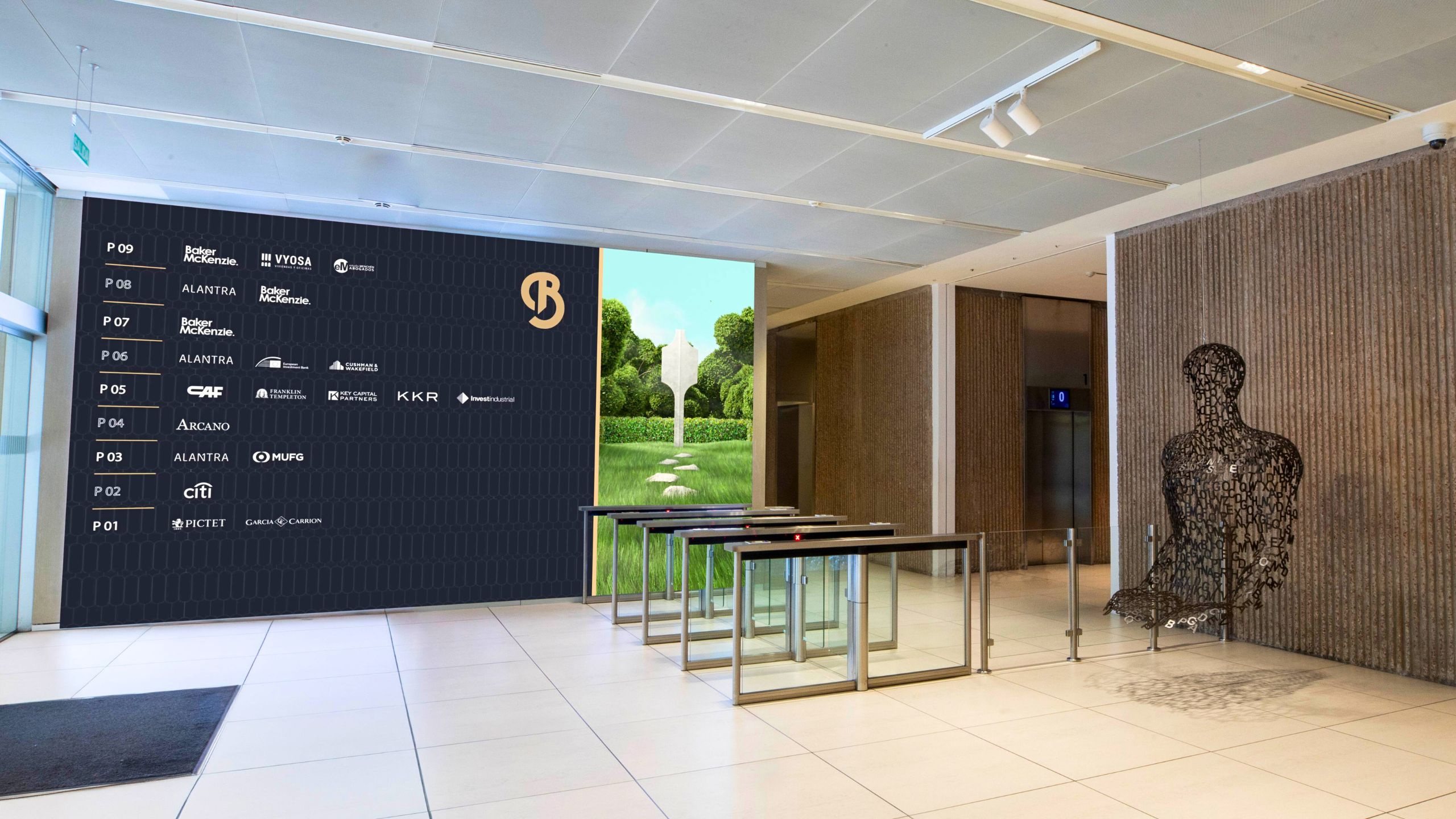 As the crowning jewel of the lobby's 2018 renovation, the year 2020 saw the Beatriz Building embrace the cutting edge of technology, equipping the hall with state-of-the-art digital displays. Upon entering the lobby, visitors are greeted by two captivating large-format LED screens showcasing creative content that enriches their experience and provides useful, up-to-date information about happenings within and around the building.