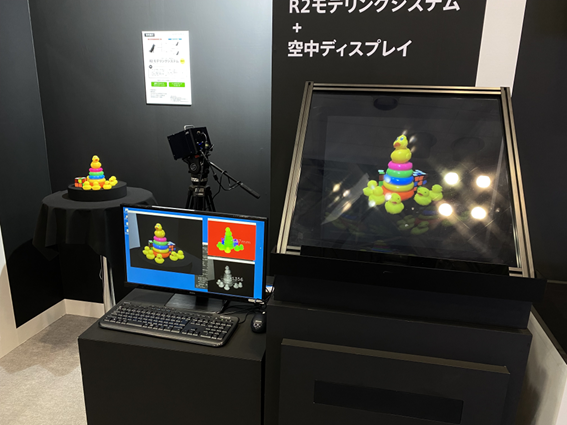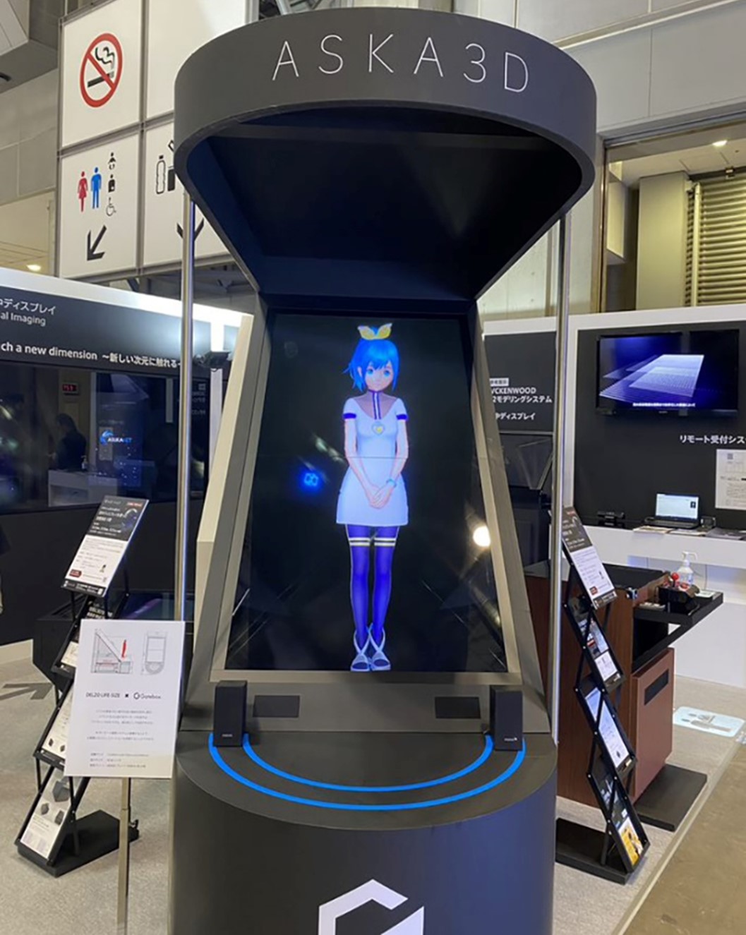 60” holographic display was exhibited. For this exhibit, two of our largest plates (ASKA3D-1050) were used, and it projected the life-sized character developed by Gatebox. It generated a huge visual impact, which drew a lot of visitors’ attention. The Gatebox will continue to develop AI contents and in the near future, further collaboration between an AI character and our holographic display would be expected.