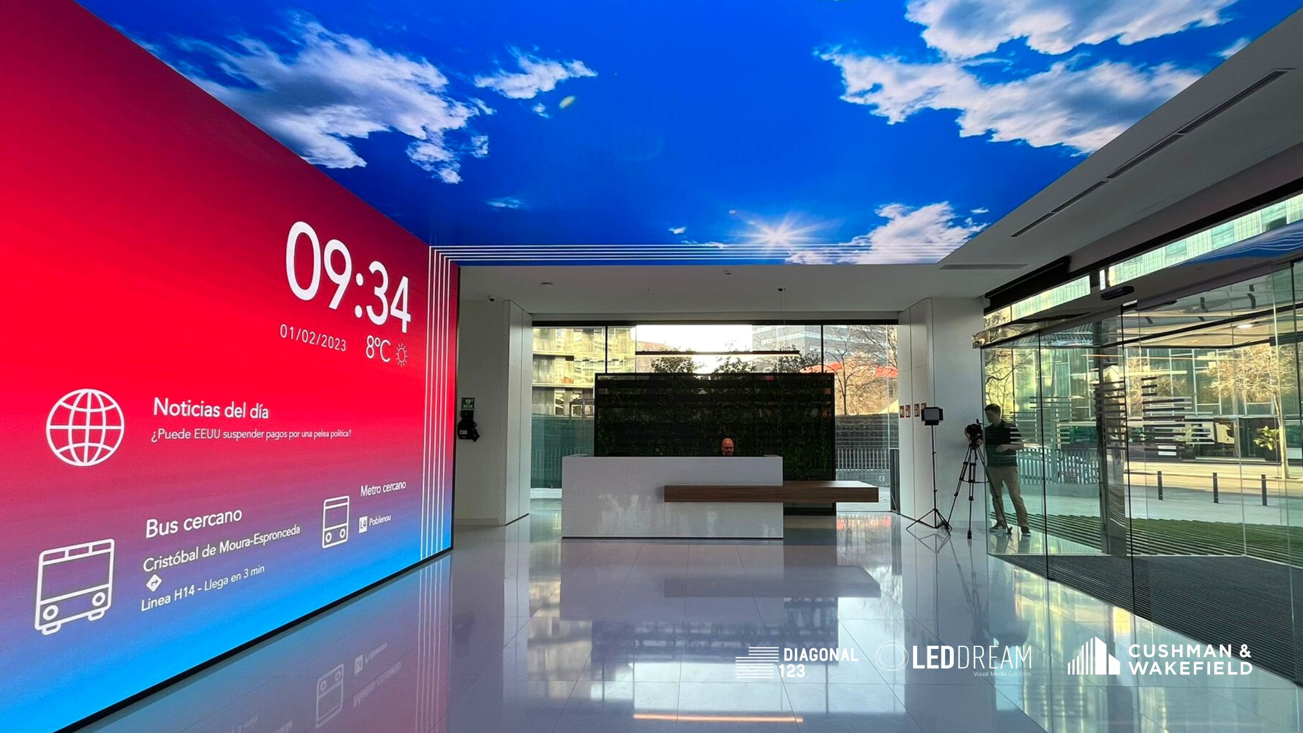 On February 1, LEDDREAM Group, with the collaboration of Cushman Wakefield, carried out an exclusive technological tour for visitors during the ISE fair (2023), the most important world event in the audiovisual sector. The event took place in the lobby of the Diagonal 123 building.