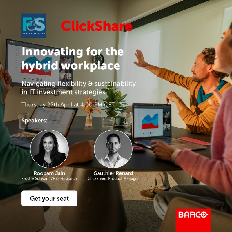This webinar, exclusive for ClickShare, gives the stage to Frost & Sullivan's VP of Research, Connected Work, ICT Roopam Jain and ClickShare's Product Manager Gauthier Renard.