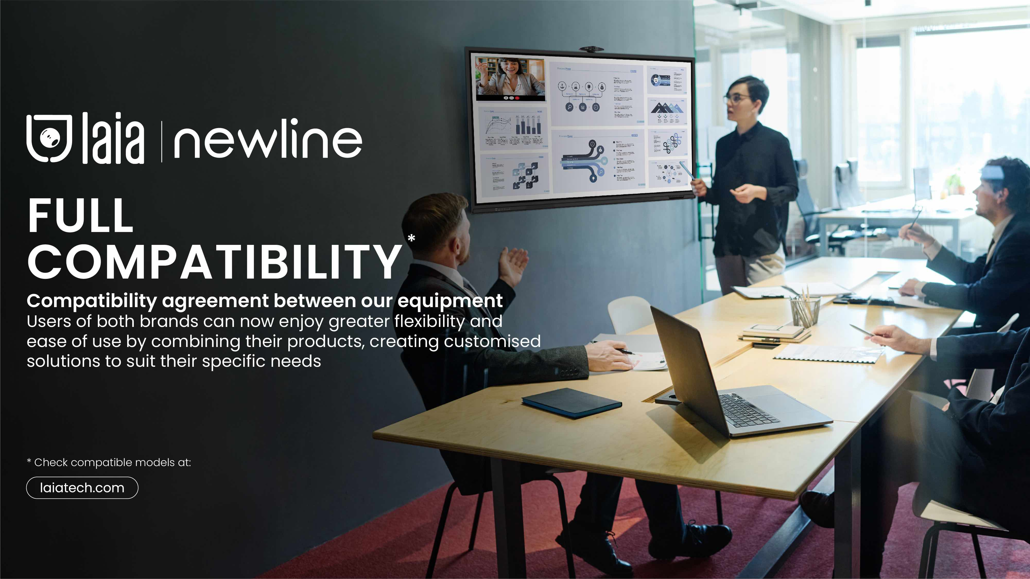 Laia and Newline Interactive two leading companies in audiovisual technology, announce an agreement that enables compatibility between their equipment. This agreement means that users of both brands can now enjoy greater flexibility and ease of use by combining their products, creating customized solutions that are tailored to their specific needs.