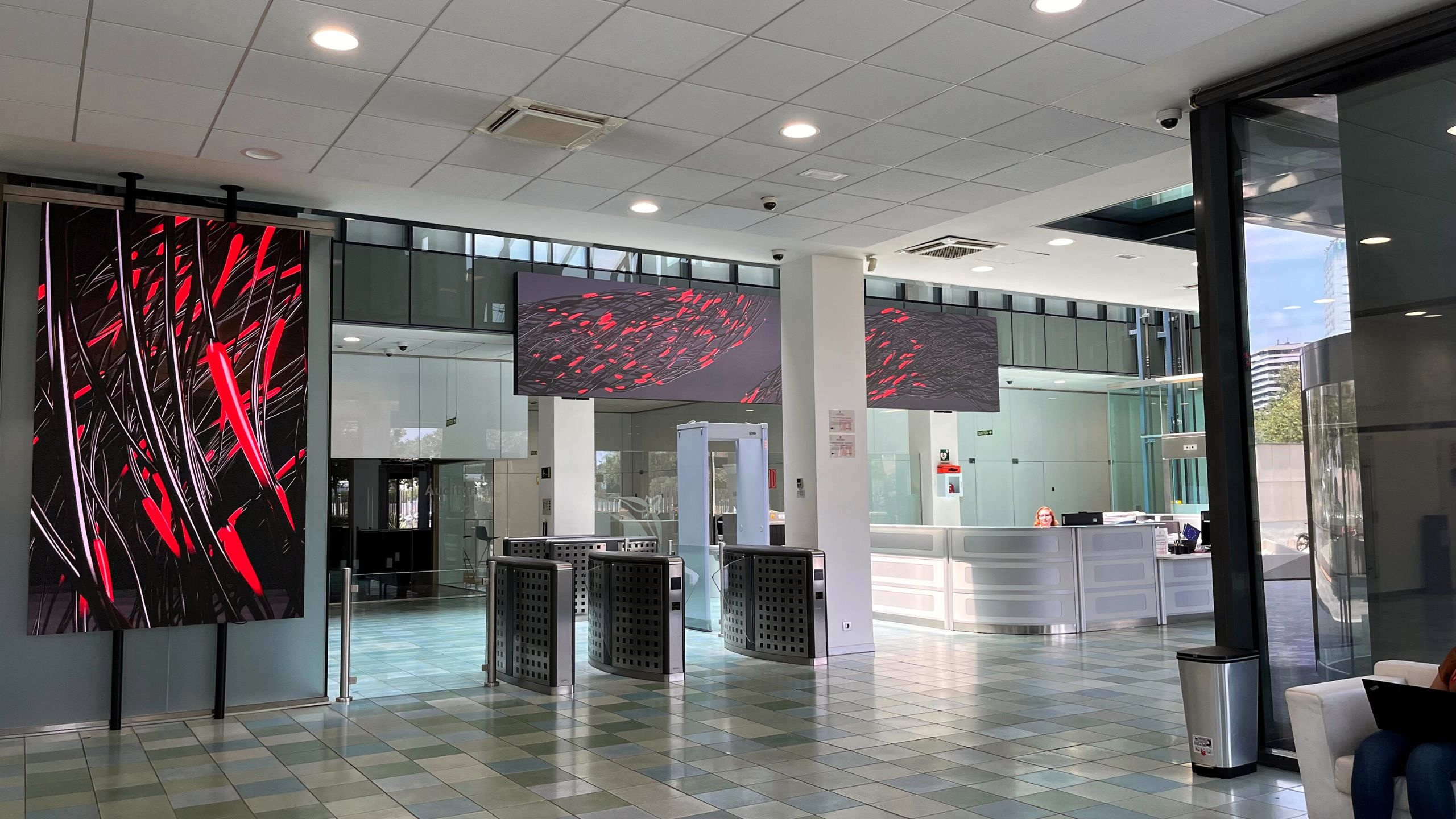 Among the implemented technologies, the installation of several Samsung LED screens -The Wall - stands out. These screens are the most powerful in the AV market, featuring high-definition displays, and they have been installed in various sizes distributed throughout the space.