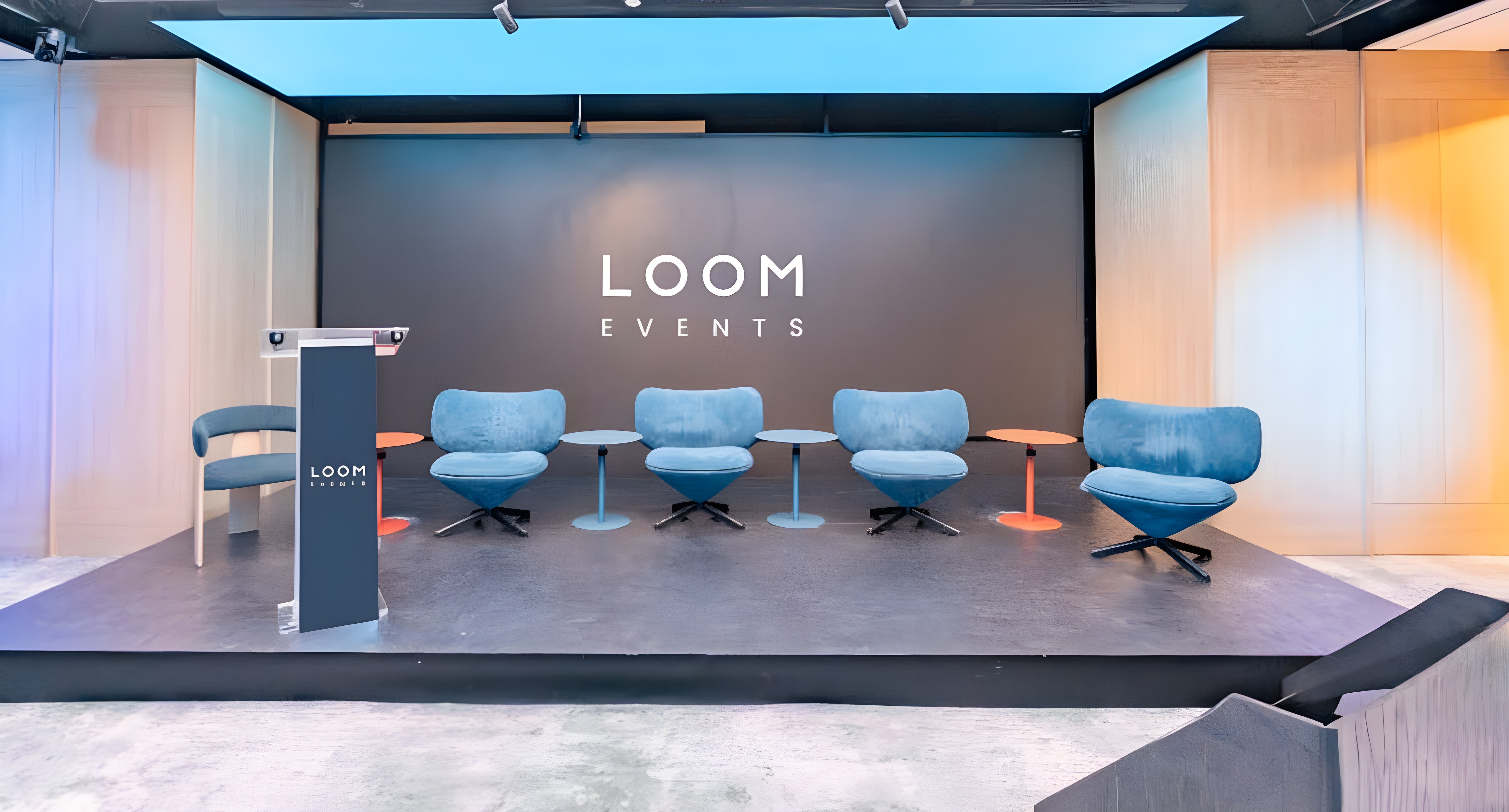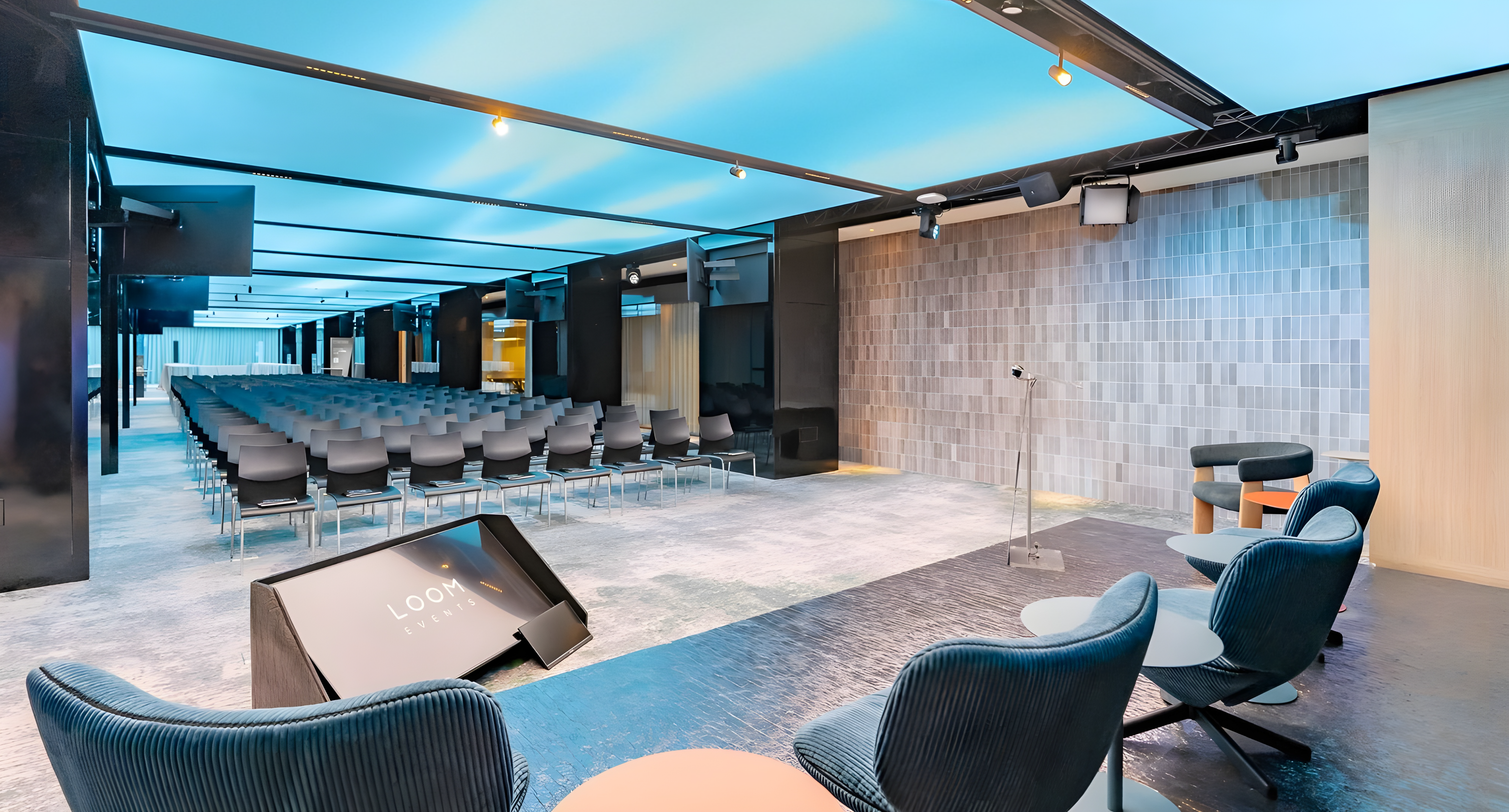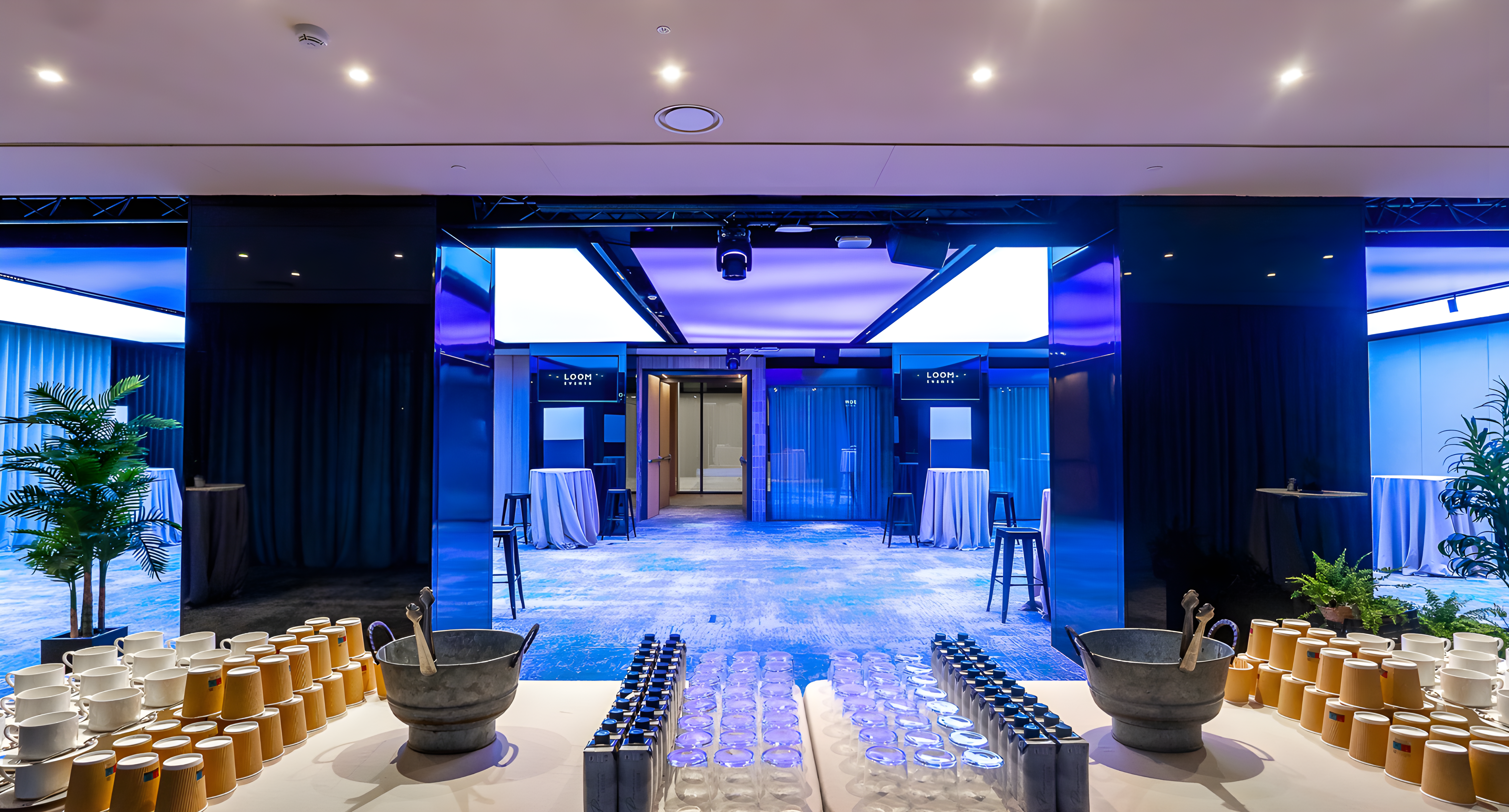 This new venue reinforces LOOM Events' position as a leader in the corporate events industry. To bring the project to life, LOOM collaborated with construction firm FLULLE, lighting design experts Artec Studio, and Lumalia Studio. Together, they created a signature feature: a 200 sqm dynamic digital ceiling that serves as a living canvas of light and motion. More than a visual statement, this luminous ceiling transforms the space into a customizable stage that brings events to life in visually stunning ways.