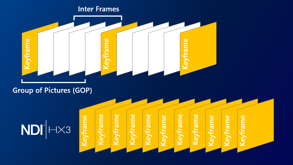 HX3 employs GOP technology to deliver this step change in video quality. So, what is GOP? Compressed video streams consist of a consecutive series of GOP (groups of pictures). The GOP contains key-frames and inter-frames within encoded bitstreams. Key-frames (also known as I-frames) have the picture's complete information, describing all the frame's details. An inter-frame (p-frame or b-frame) only represents the part of a picture that has changed. That's how compression technology eliminates redundant information and reduces the required bandwidth. In a nutshell, more keyframes mean more data and higher picture quality, while more inter-frames mean fewer data and a slight loss of video quality. As well as delivering higher image quality, keyframes require less computational processing, so the fewer inter-frames, the lower the latency.