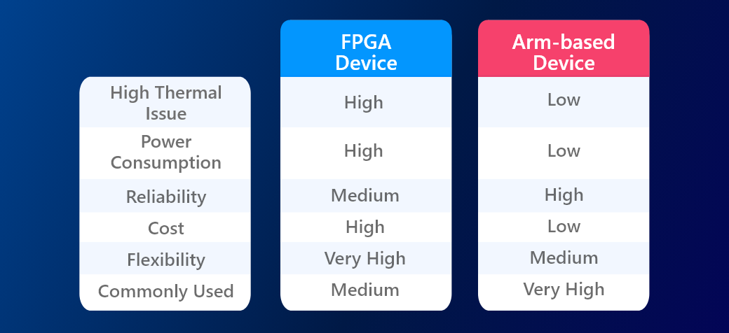 Whereas NDI requires an FPGA, NDI|HX3 has no such requirement. This is very important! An FPGA is a programmable hardware device or chip. It's an extremely flexible electronic component that can be programmed to achieve virtually any digital function. However, an FPGA contains millions of Logic-Blocks that require high power consumption and generate heat. The cost of an FPGA is also expensive.