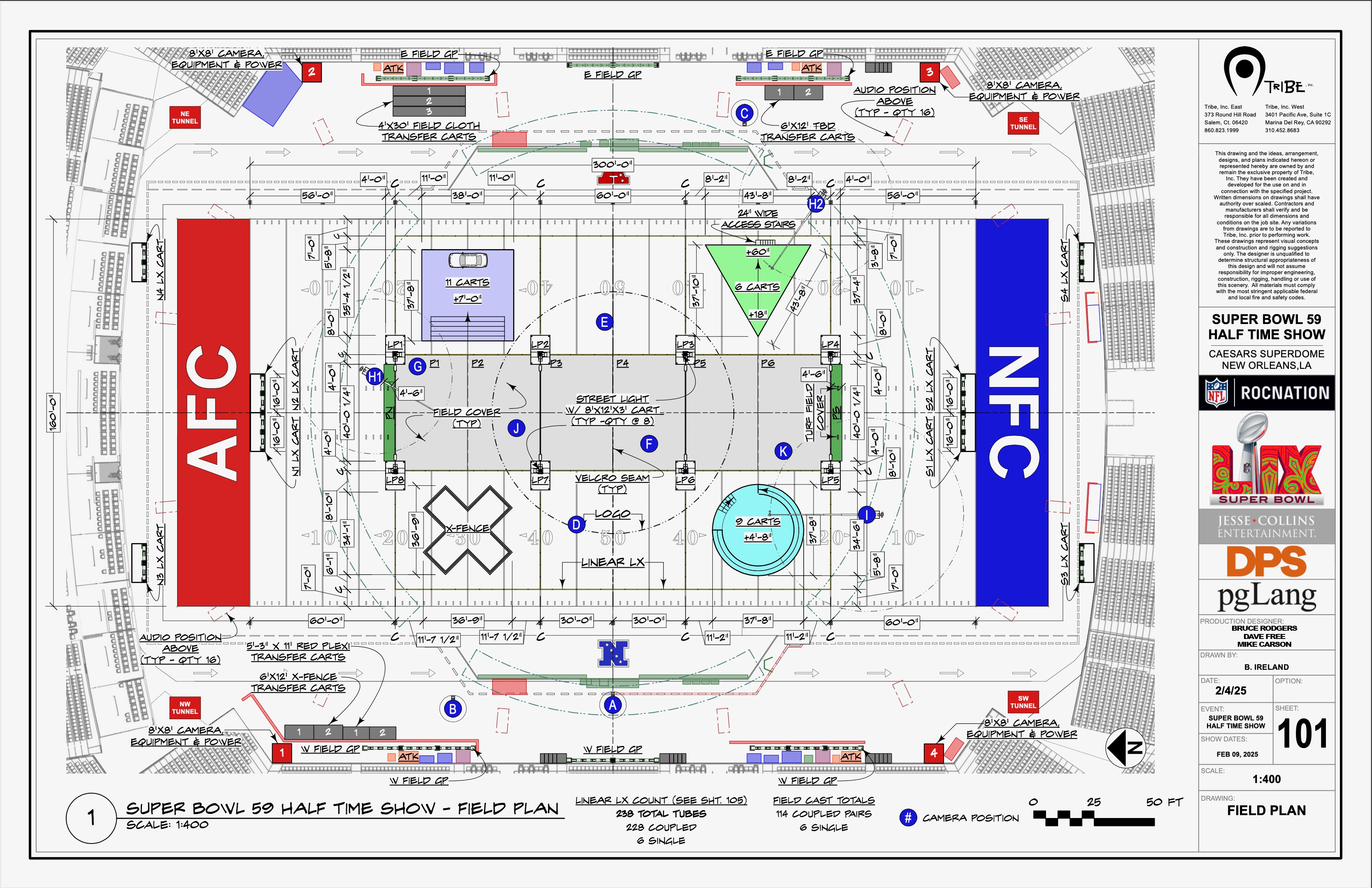 The field plan for the 2025 Superbowl Halftime Show