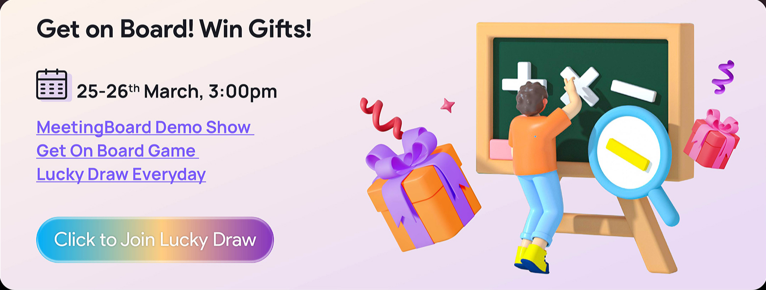 A next-gen videoconferencing device, MeetingBoard consists of a 4K built-in camera, 6 crystal clear speakers, 16 full-duplex beamforming microphones, and a 4K touch display, providing an immersive A/V experience with rich collaboration. Powered by AI technology, the camera brings diverse views such as Auto Framing, Speaker Tracking, Multi-Focus Framing, and Picture-in-Picture. It has the scalability to fit almost any room and fits a variety of deployment scenarios.