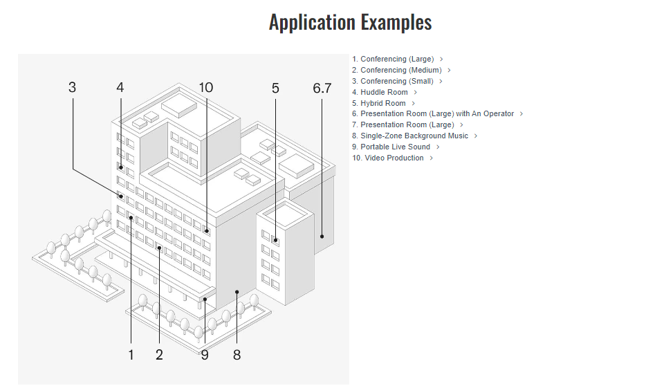 Conferencing & Collaboration, Broadcast AV, Digital Signage, Learning Solutions, Live Events / Performance Entertainment, and 1 more
