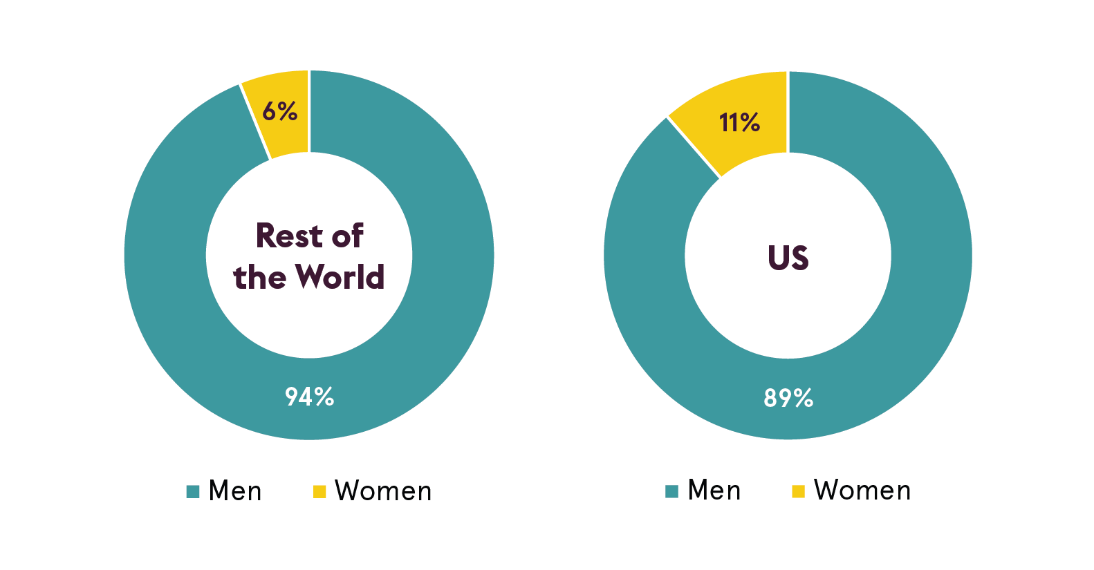 The parental leave numbers add up to form two main conclusions: One is the shortfall on leave for mothers, as 25% of full-time respondents report having none at all, and the U.S. average duration is only 10 weeks. The second is the gap with paternity leave, which is both far less frequent and shorter. The maternity leave shortfall and paternity leave gap both pose challenges to women in AV.