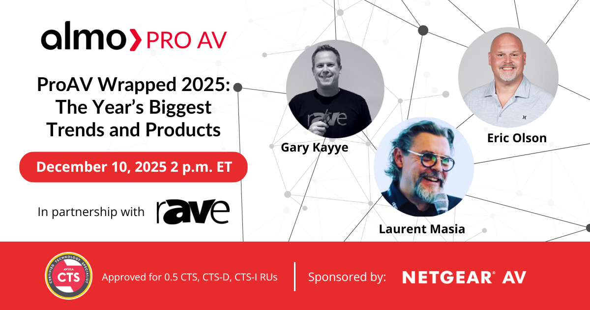 12.10.25 | WEBINAR Approved for 0.5 CTS, CTS-D, CTS-I RUs | Join Gary Kayye and a panel of ProAV experts as they reflect on the biggest trends, technologies, and products of 2025. This session will also preview what’s on the horizon for 2026, and provide AV Pros with actionable insights.