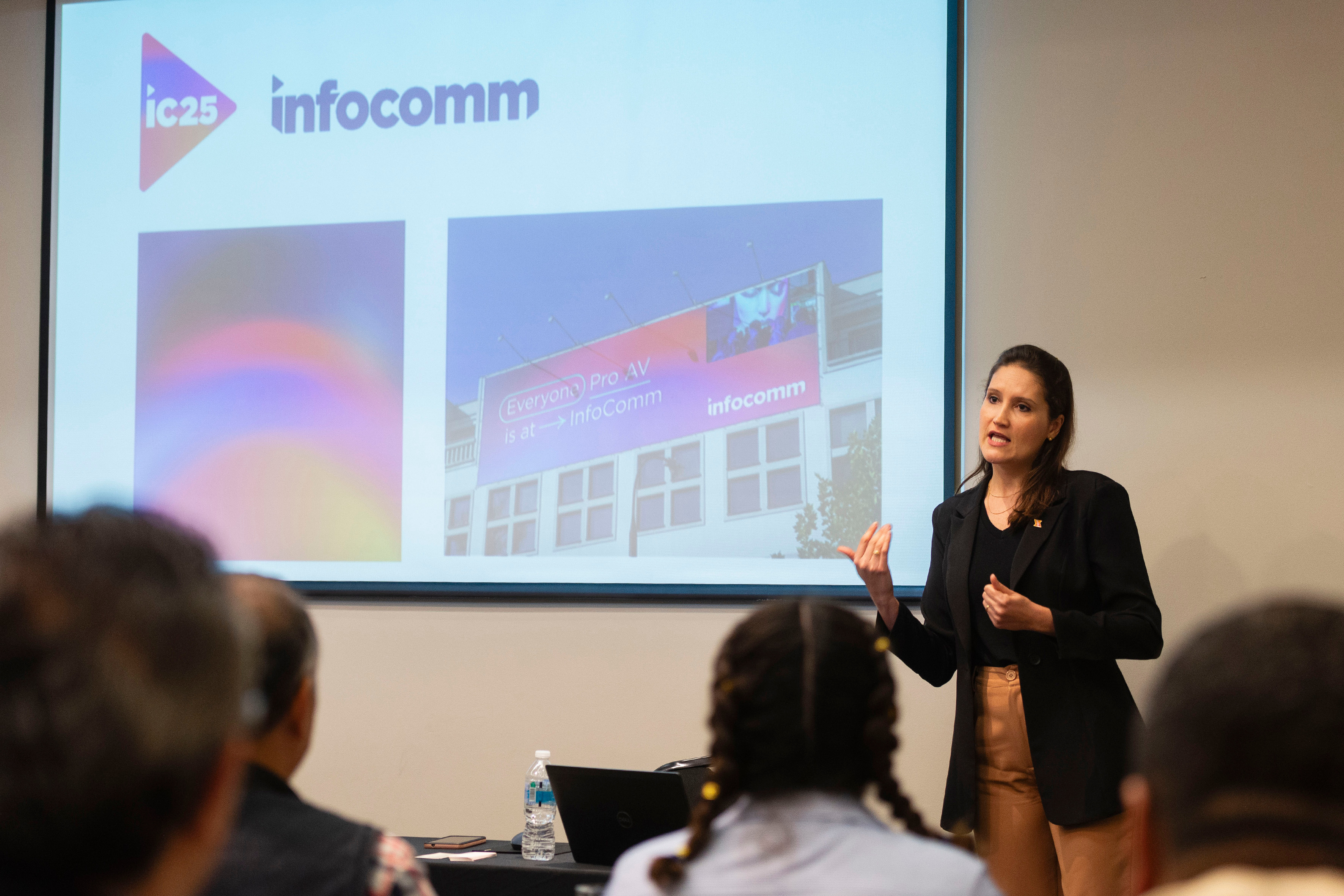 Por su parte Franciele Mesadri, gerente de marketing de AVIXA Latinoamérica, presentó la nueva identidad visual de InfoComm América Latina y ejemplos de las aplicaciones de la innovadora imagen que sigue la línea de la marca global InfoComm. La identidad visual mantiene la estética y el concepto de las ferias hermanas y sin duda conectará a la audiencia latinoamericana con el prestigio internacional del evento.