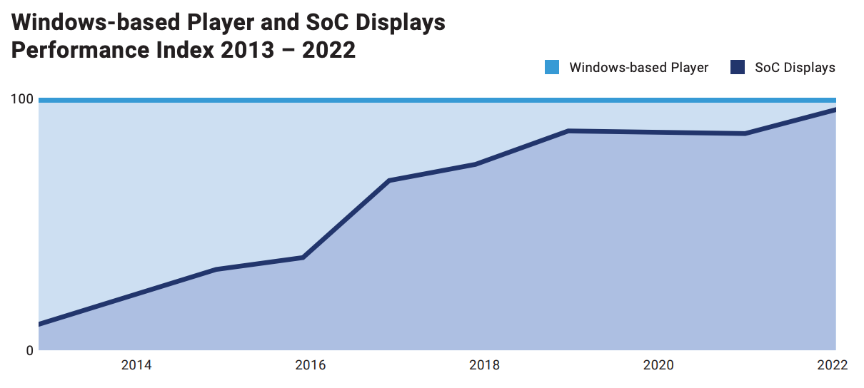System on Chip (SOC) has been playing catch up with media players since its introduction by hardware manufacturers in 2013. SOCs are not only used to power the content playback, but the entire display. Unfortunately for SOCs, the negative image from the past has stuck, despite the fact that “the latest generations are on par with Windows i5players”.