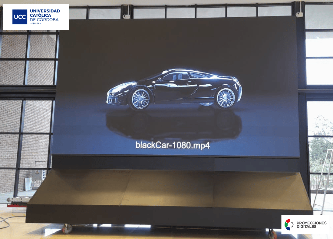 El cliente nos solicitó un Video Wall de gran formato para su Auditorio, cuyo desafío principal era que debía ser desplazable con facilidad para poder ser usado en ambos frentes del espacio.