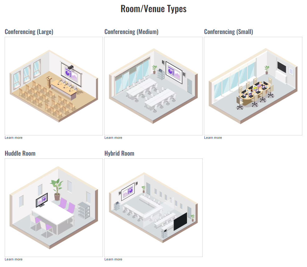 You can find your Conferencing & Collaboration solutions, that fit to various Room/Venue Types.