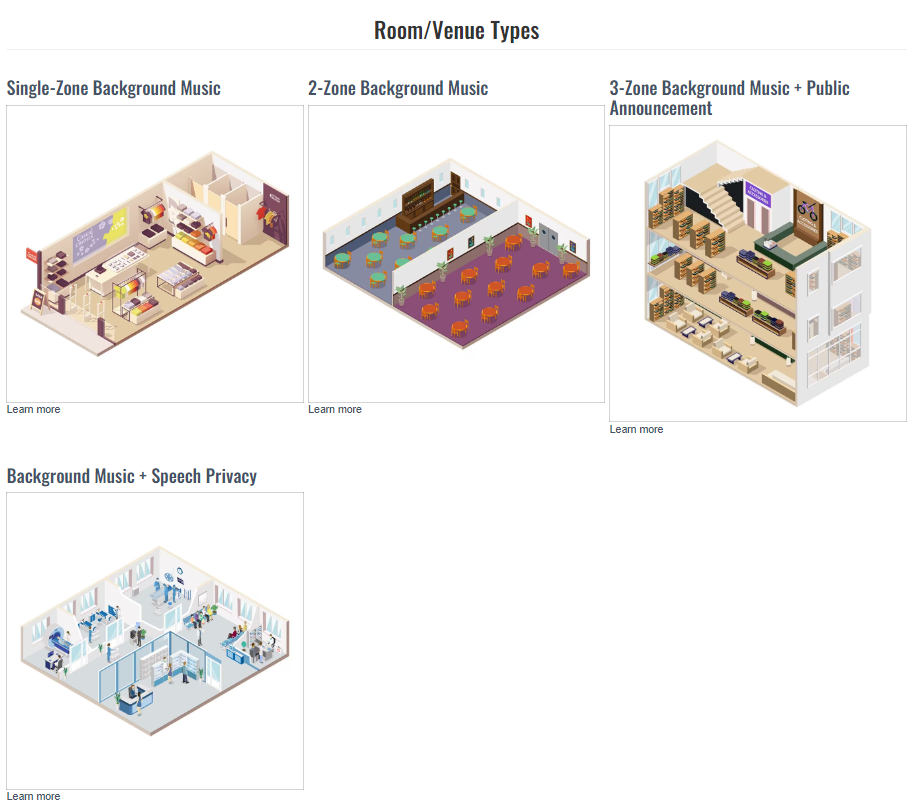 You can find your Distributed Audio & Public Address, that fit to various Room/Venue Types.