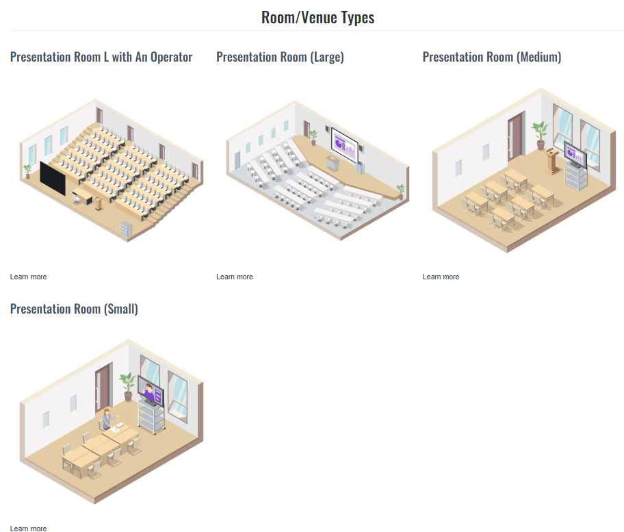 You can find your Learning solutions, that fit to various Room/Venue Types.