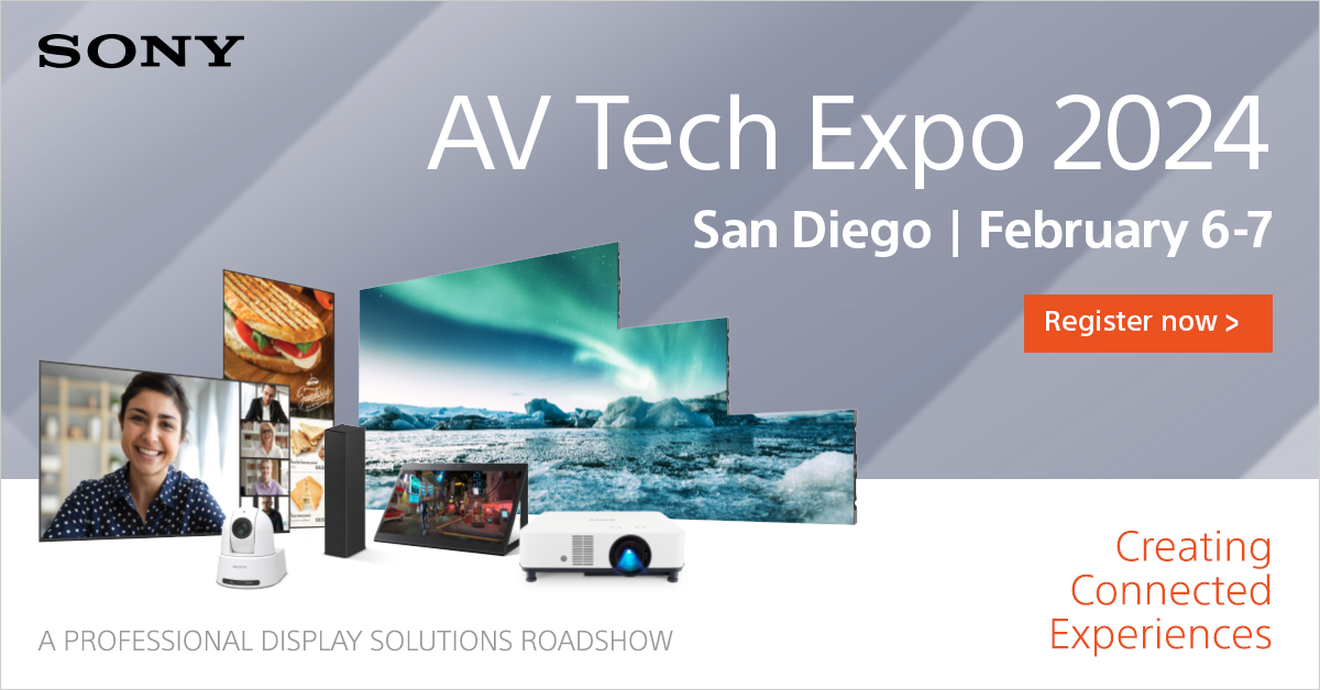 Location Sony Electronics 16535 Via Esprillo, San Diego, California Event Date Tuesday Feb 6th and Wednesday Feb 7th from 10am-5pm Presentations and Panels tech talks and thought leadership panels throughout the event with opportunities to attend two different CTS accredited courses Technology Partners includes software, hardware, solution and industry providers from Sony’s Partner Network Industry Associations DSF (Digital Signage Federation), AVIXA Women’s Council, and WAVIT (Women in AV/IT) Food & Fun lunch 12pm – 2pm each day with Happy Hour on Tuesday from 4pm - 7pm