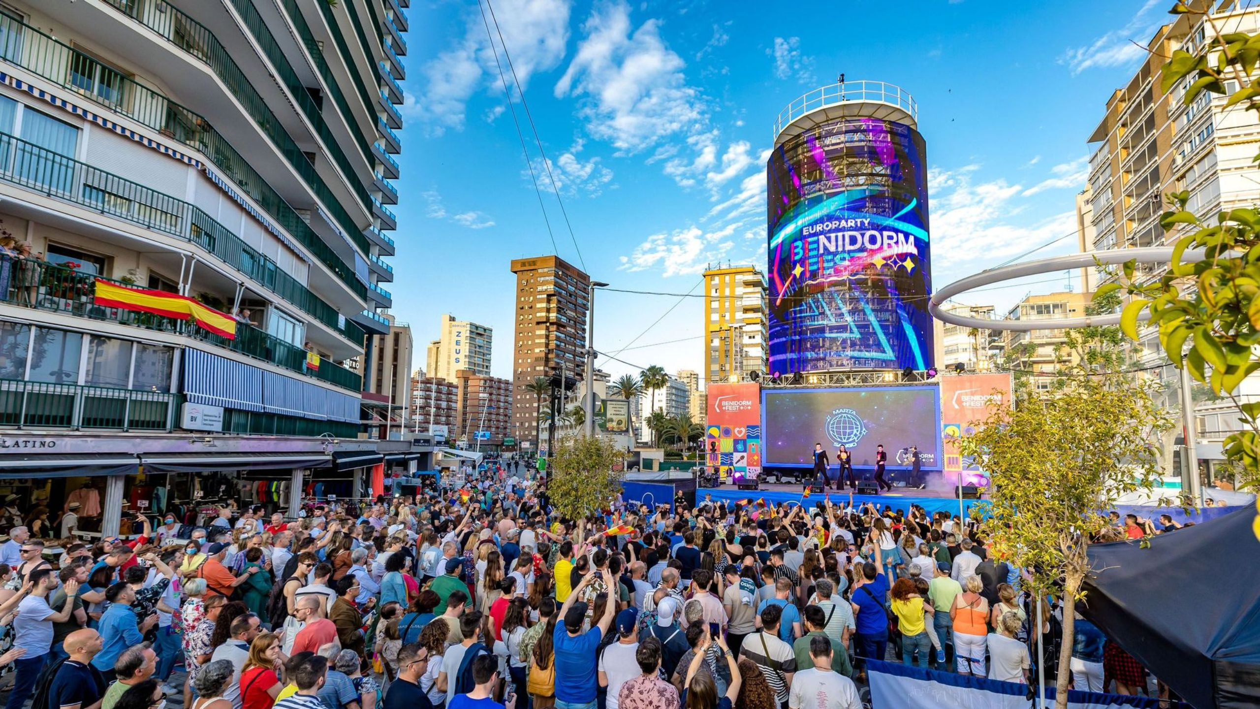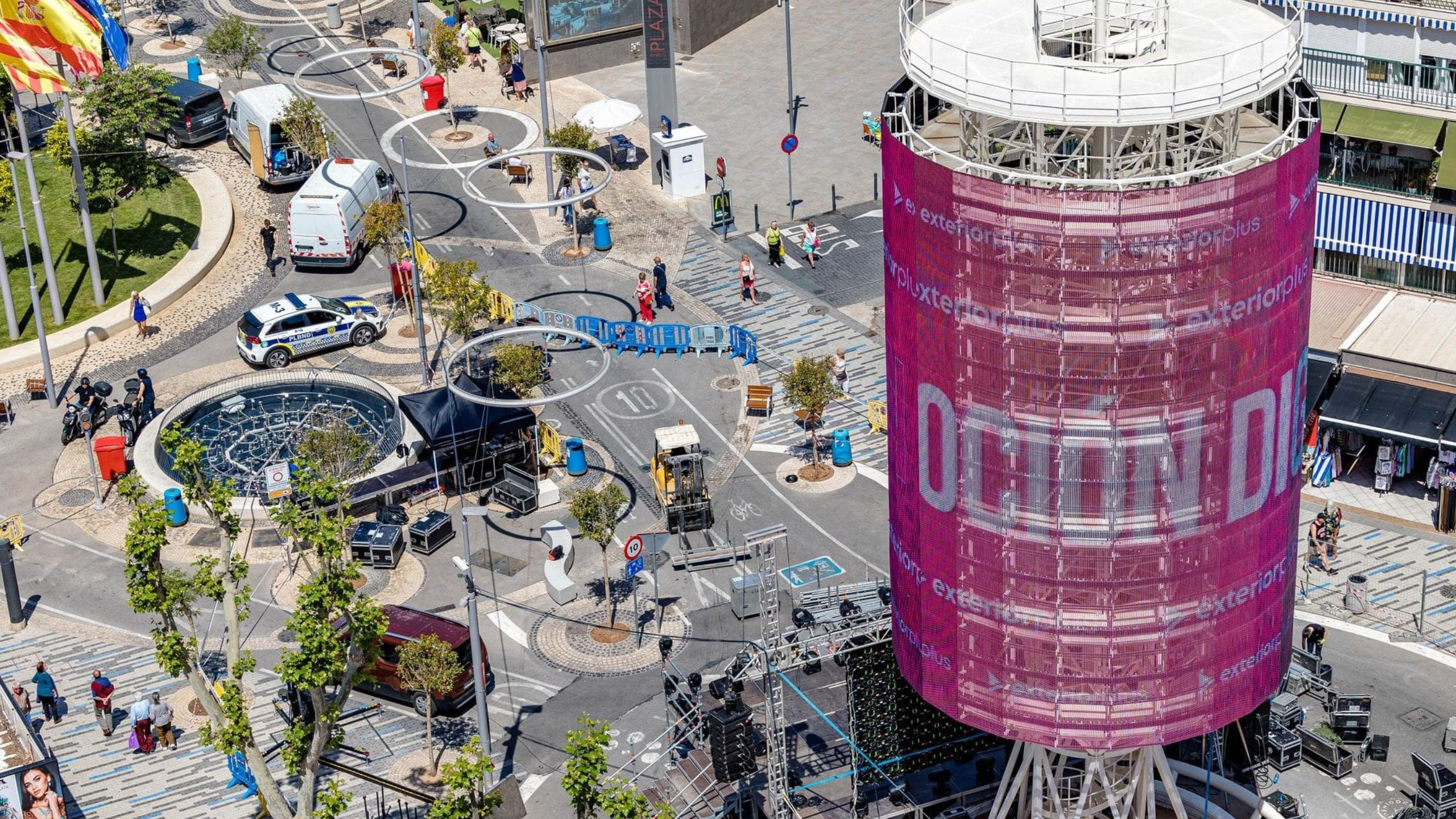 The inauguration of the Tecnohito in Benidorm became a party throughout Europe on the occasion of the Eurovision Song Contest, which was broadcast live internationally from the Plaza de la Hispanidad. In addition, a stage was set up at the foot of the Tecnohito, with performances by some of the semifinalists and finalists of the Benidorm Fest event . We were also able to see the first advertisers in the hands of Exterior Plus, such as Visit Benidorm, FCC and McDonald's, among others.