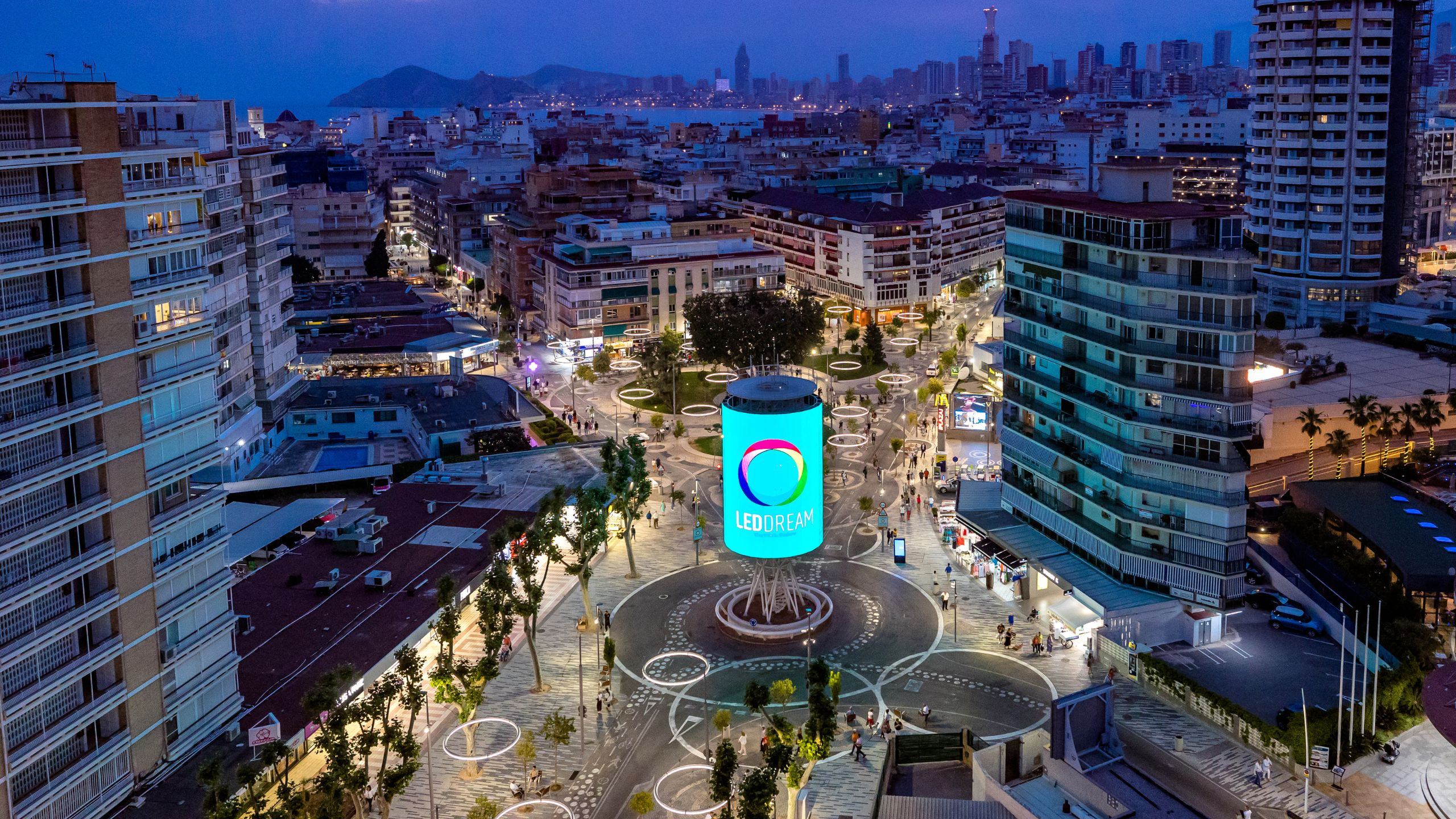 Benidorm is famous for being one of the most visited tourist cities in the Mediterranean, with imposing skyscrapers and paradisiacal beaches. On the occasion of the remodeling works of the Avenida del Mediterráneo, this year a new digital icon has arrived in the city in one of the main tourist and commercial routes of the capital of the Costa Blanca. It is one of the most innovative digital elements in Europe: the Tecnohito, a circular outdoor LED screen of more than 300m2. This new 22-meter-high digital icon of the city will be used for advertising and institutional actions and live shows, among other audiovisual content/events.
