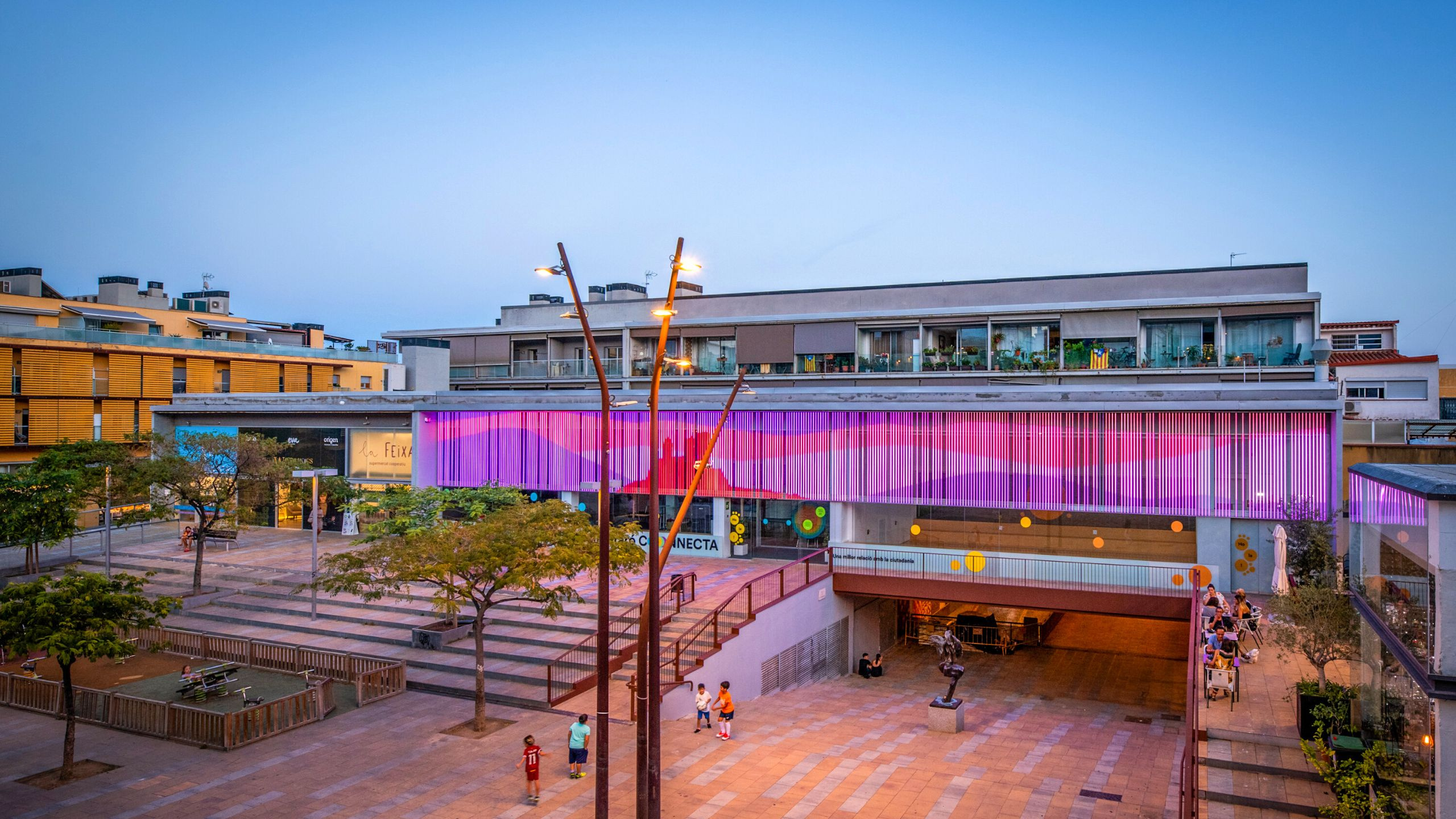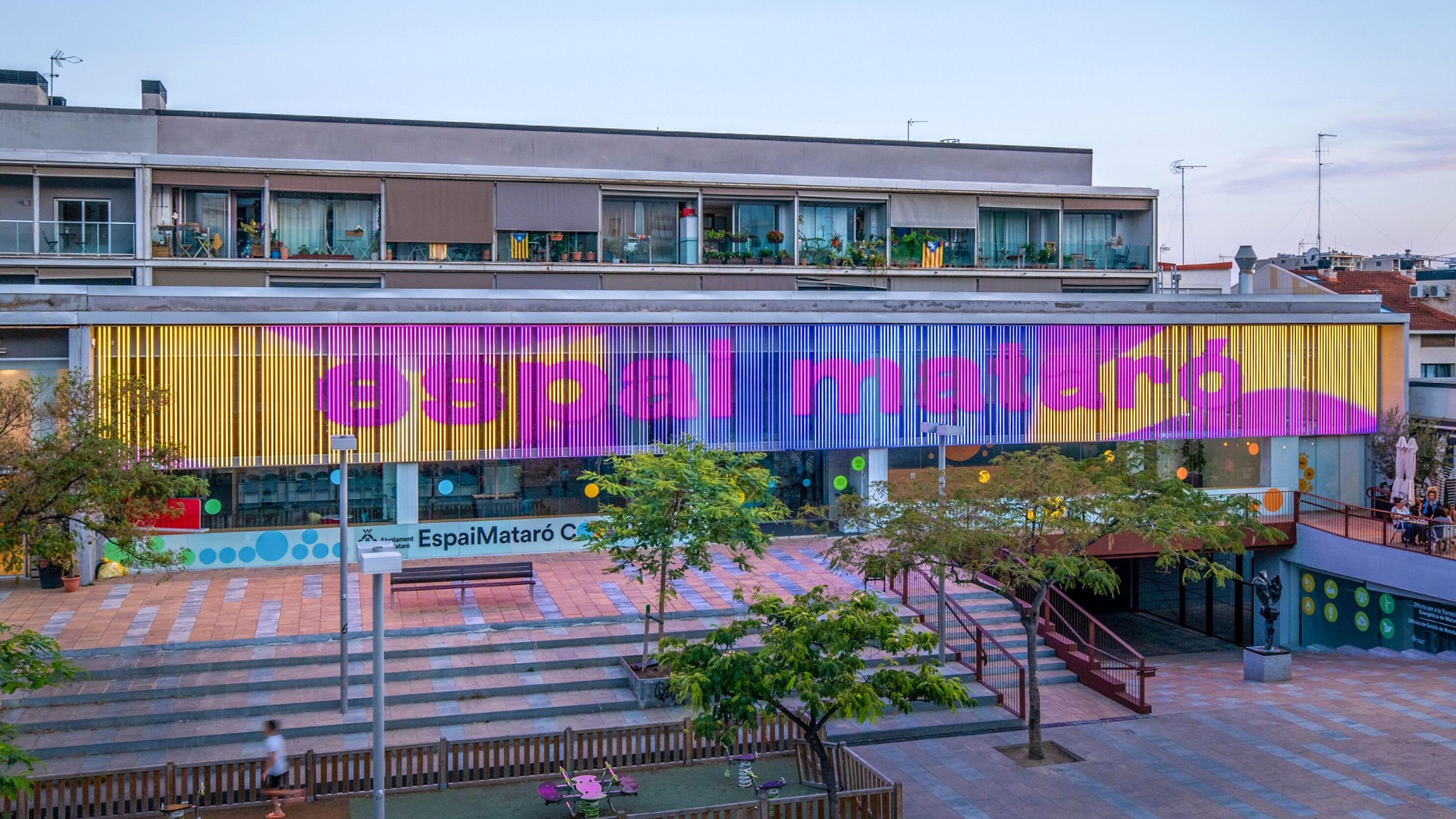 - Mataró is now illuminated with light and creativity thanks to the unveiling of its groundbreaking interactive multimedia facade at L’Espai Mataró Connecta. This remarkable installation became possible through the collaboration of Artec Studio, Lumalia Studio, and ProtoPixel, enabling the display of various artistic productions and allowing citizens to create interactive content. It has become the new digital symbol of the city and a driving force behind the revitalization of this area of Mataró.